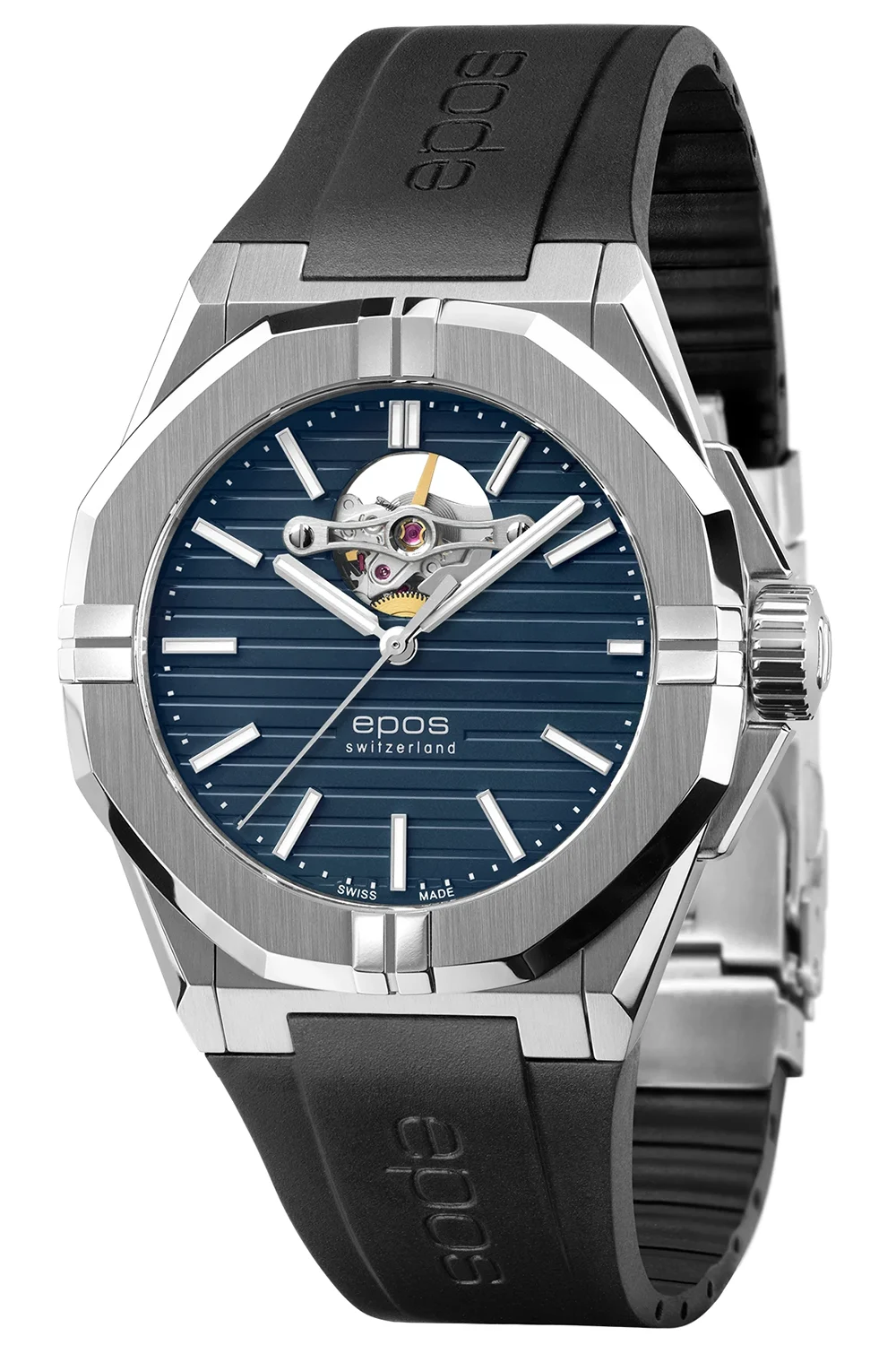 Epos Sport Open Heart 3506.133.20.16.55 to męski zegarek automatyczny z niebieską tarczą i otwartym balansem. Pasek z tworzywa oraz szkło szafirowe gwarantują wygodę i solidność.
