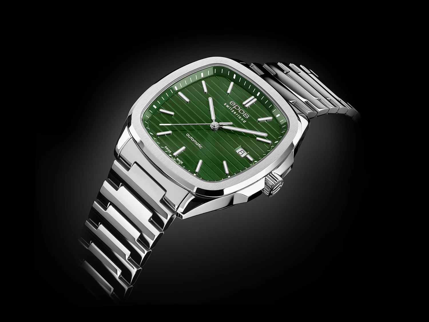 Zegarek męski Epos Timeless 3511.152.20.13.30 to propozycja dla osób, które lubią elegancję połączoną z charakterem współczesnej formy. Kwadratowy zegarek Epos na stalowej bransolecie od pierwszego spojrzenia wyróżnia się intensywnie zieloną tarczą z poziomym giloszem, nadającą mu dynamiczny i świeży wyraz. To szwajcarski zegarek automatyczny, który łączy precyzyjne wykonanie z nowoczesną estetyką dopracowaną w każdym szczególe.