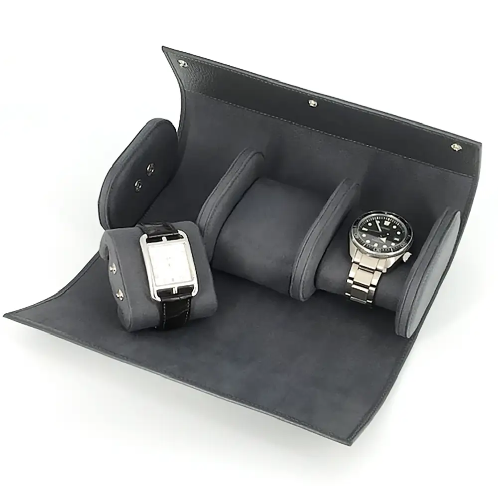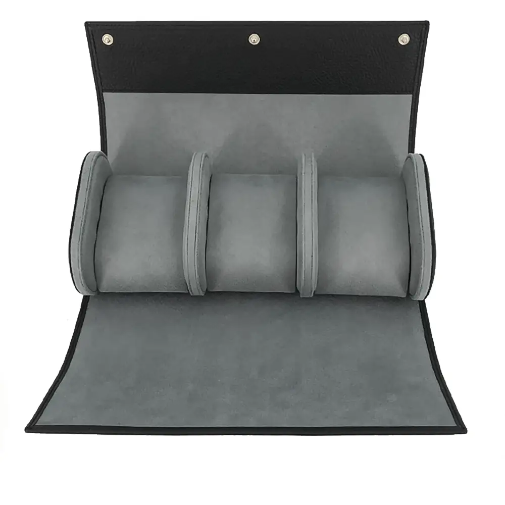 Etui wyposażono w oddzielne przegrody dla każdego zegarka, zapinane na solidne napy, co dodatkowo zabezpiecza czasomierze przed uderzeniami o siebie. Każda przegroda posiada wyjmowaną poduszkę, na której można wygodnie umieścić zegarek i łatwo wyjąć go w razie potrzeby. Dzięki kompaktowym wymiarom i przemyślanej konstrukcji Leanschi WRO3-NEOB sprawdzi się zarówno w domu, jak i w podróży, zapewniając idealne warunki dla cennych czasomierzy.