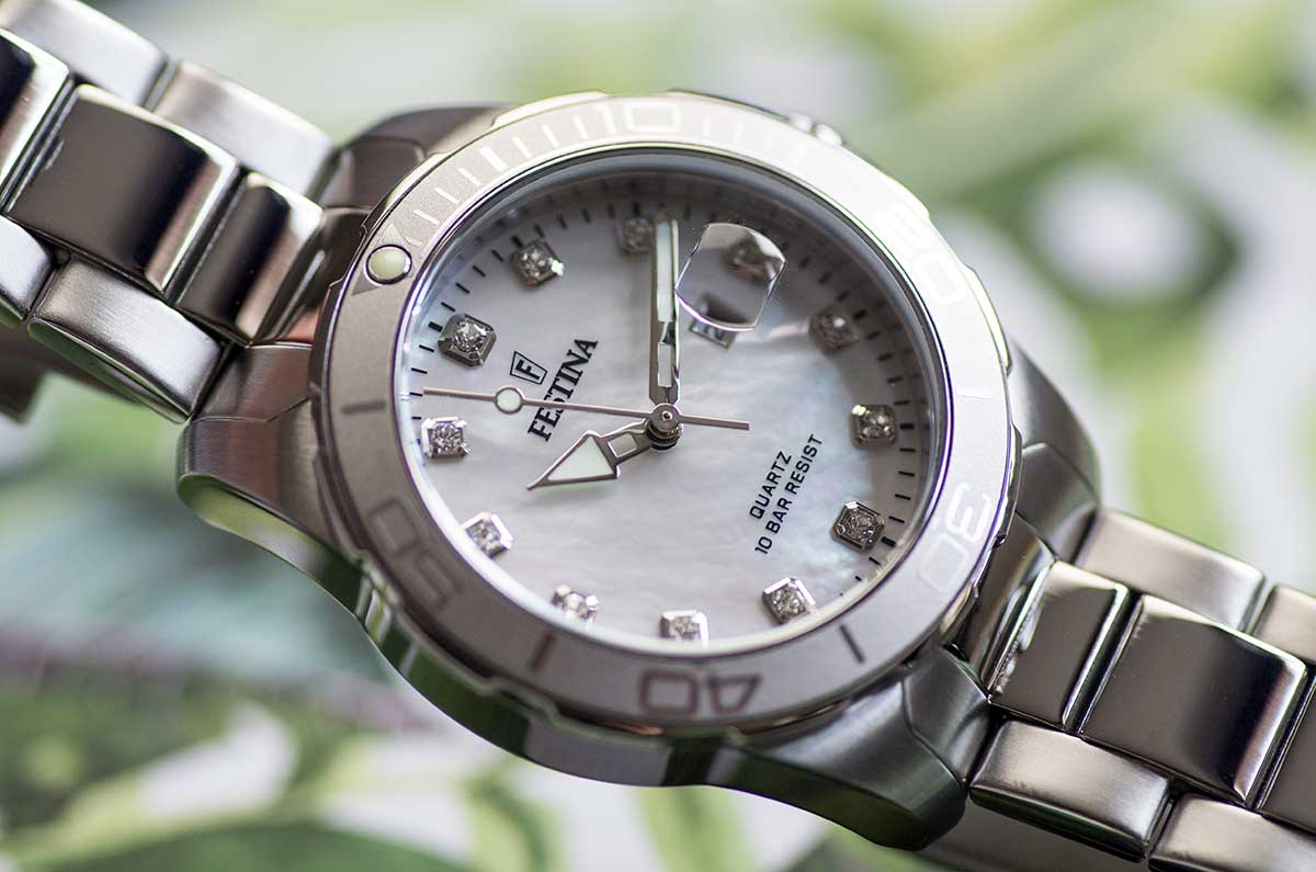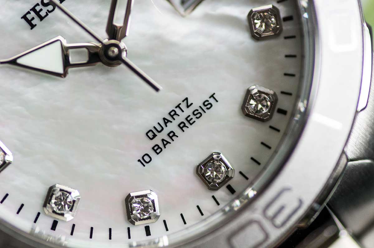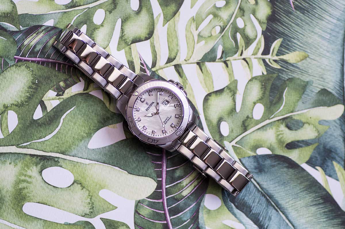 Z myślą o użytkowniczkach dodatkowo prowadzących sportowy tryb życia, model F20503/1 cechuje wysoka klasa wodoszczelności do 100 metrów. Oznacza to, że będą one mogły posiadać wiedzę o czasie podczas porannego prysznica, wieczornej kąpieli, czy w trakcie pobytu na basenie. Do funkcji czasomierza, oprócz wskazywania godzin, minut i sekund w sposób analogowy, należy datownik - efektownie osłonięty lupką powiększającą, która dobrze sprawdza się pod wodą. 35-milimetrowej, stalowej kopercie wysoce odpornej na zarysowania i korozję towarzyszy natomiast jednokierunkowo obracana luneta z podziałką minutową. Skala ta nie tylko dodaje zegarkowi sportowego, wręcz nurkowego wydźwięku, ale przede wszystkim oddziałuje na rzecz jeszcze większej funkcjonalności odczytu - zarówno na lądzie, jak i pod powierzchnią. Za całą pracę urządzenia odpowiada bardzo dokładny mechanizm kwarcowy zasilany na periodycznie wymienną baterię.