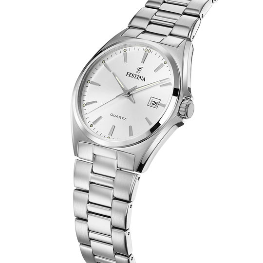 Wizualnie, model Festina Classic Bracelet wyróżnia się przede wszystkim: wyrafinowaną tarczą, monochromatyczną kolorystyką, stalową bransoletą z dwoma rodzajami ogniw oraz mechanizmem kwarcowym z 3 wskazaniami i funkcją daty.