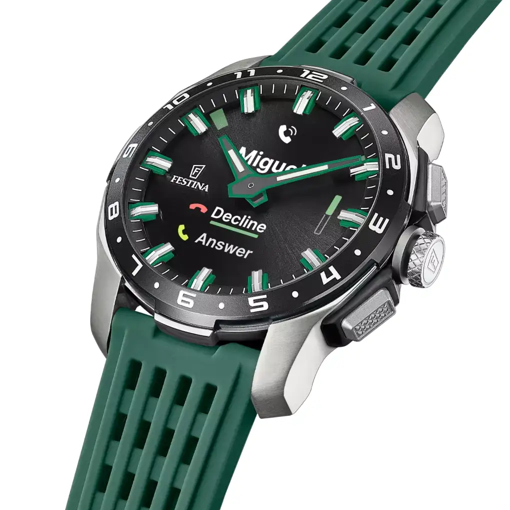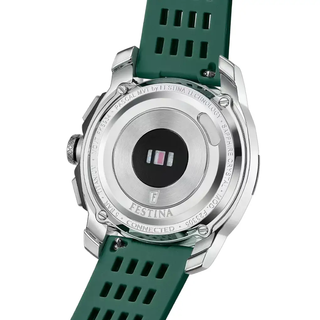 Festina Connected Full D F23305/1 to wybór dla osób ceniących materiały klasy premium i nowoczesne rozwiązania technologiczne podane w stonowanej formie. Zielona kolorystyka paska i detali nadaje konstrukcji sportowego charakteru, który doskonale komponuje się z szarym odcieniem tytanu. Hybrydowa budowa sprawia, że urządzenie zachowuje prestiżowy wygląd klasycznego modelu, ujawniając swoją inteligentną naturę jedynie wtedy, gdy jest to wymagane. Jest to trwały smartwatch męski, który sprawdzi się zarówno podczas formalnych spotkań, jak i intensywnych aktywności w terenie.