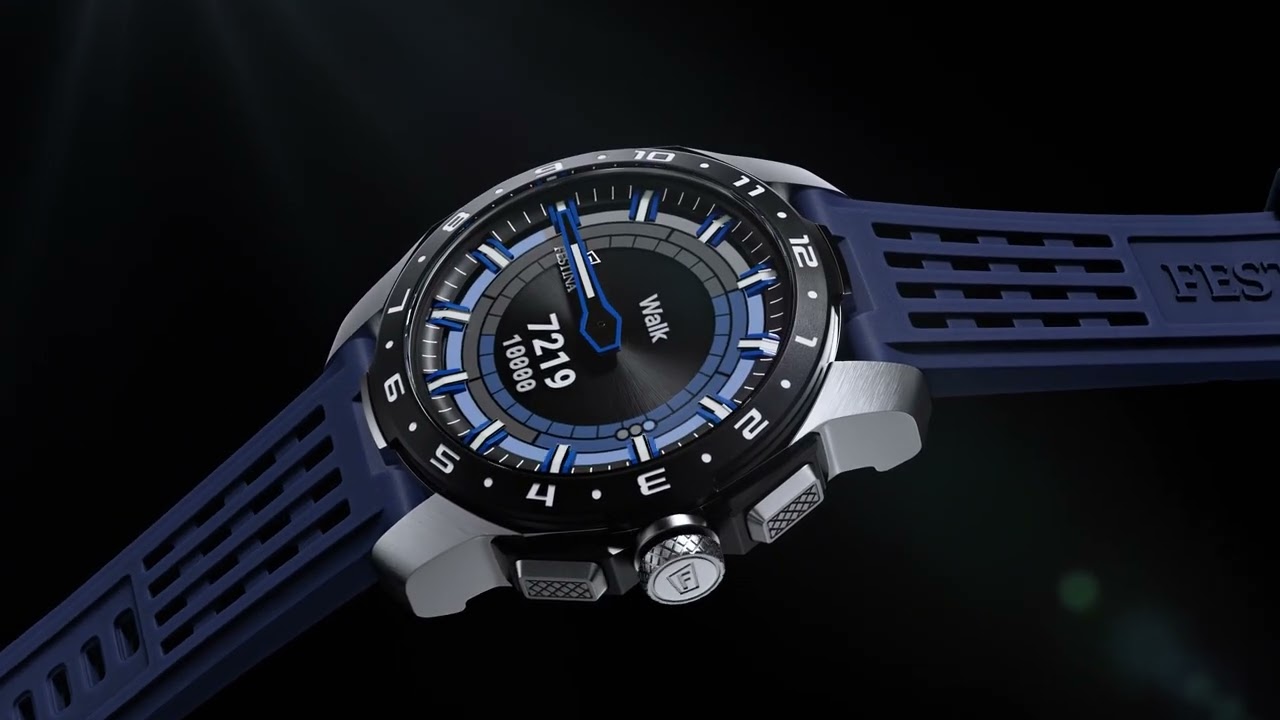 Wyróżnikiem tej wersji jest szary pasek z perforowanego kauczuku, który gwarantuje doskonałą wentylację nadgarstka. Pod odpornym na zarysowania szkłem szafirowym ukryto tarczę z luminescencyjnymi wskazówkami oraz cyfrowy wyświetlacz, który staje się widoczny dopiero wtedy, gdy użytkownik potrzebuje sprawdzić dane o zdrowiu lub powiadomienia. Ten zegarek smartwatch został zaprojektowany w szwedzkim ośrodku technologicznym w Malmö, co przekłada się na stabilne połączenie i intuicyjną obsługę za pomocą dedykowanej aplikacji.