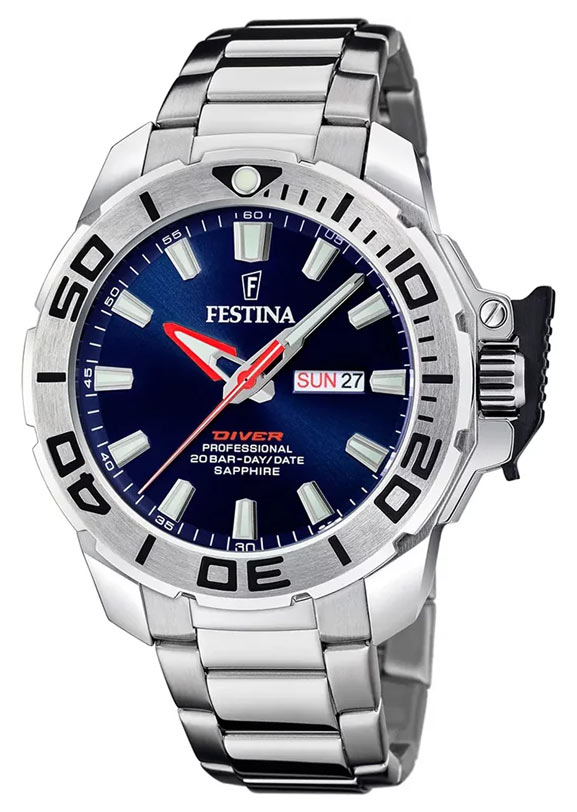 Profesjonalny nurkowy zegarek męski w zestawie prezentowym z dodatkowym paskiem Festina Professional Diver pokazuje, że Festina nie przestaje zagłębiać się w świat sportu. Marka od zawsze kojarzona z aktywnością i sportowymi czasomierzami tym razem proponuje produkt dla fanów zegarków diver. Jest to dodatek, który może poszczycić się najlepszymi cechami zaoferowanymi za nieproporcjonalną cenę.