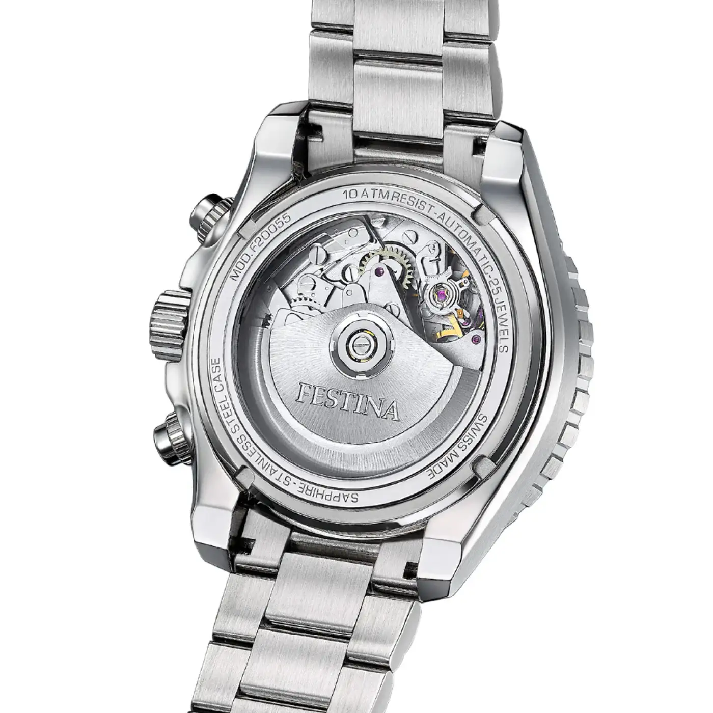 Całość uzupełnia stalowa bransoleta z zapięciem motylkowym o solidnej konstrukcji oraz sportowy pierścień wzmacniający lotniczy charakter modelu. Festina Swiss Made Aviator Automatic to czasomierz dla mężczyzn, którzy oczekują od zegarka nie tylko wyrazistego stylu, ale również sprawdzonej mechaniki i bogatej funkcjonalności.