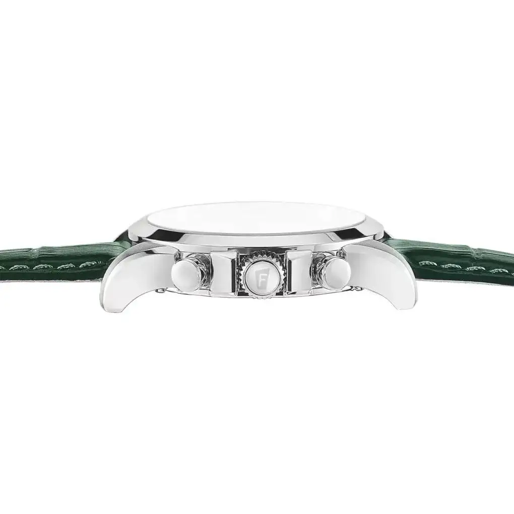Zegarek męski Festina Swiss Made Chrono F20094/4 to propozycja o eleganckim, ale wyraźnie użytkowym charakterze, łącząca klasyczne wzornictwo z funkcjonalnością sportowego chronografu. Stalowa koperta o średnicy 40 mm została dobrze wyważona pod kątem komfortu noszenia, a zielona, wielopoziomowa tarcza z czytelnymi indeksami ułatwia szybki odczyt czasu w różnych warunkach. Całość dopełnia skórzany pasek z klasyczną klamerką oraz szafirowe szkło, które zwiększa odporność na codzienne zarysowania.