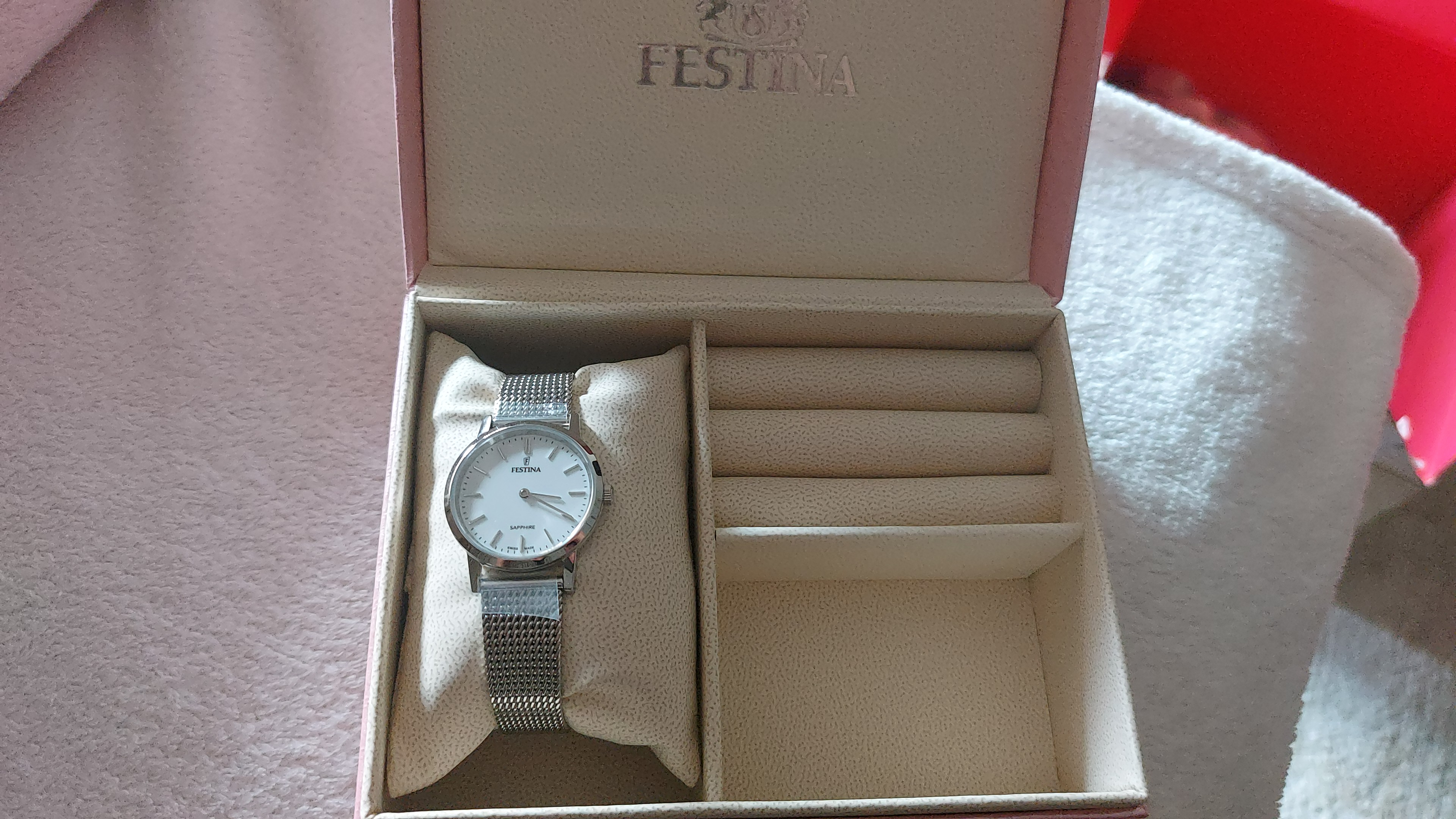 Zegarek damski Festina Swiss Made Lady F20015/1 to powrót Festiny do swoich korzeni, kiedy to miała siedzibę i fabrykę w Szwajcarii. Przeniesienie części produkcji do ojczyzny zegarmistrzostwa zaowocowało powstaniem w pełni szwajcarskiego zegarka Festina, którego potwierdzeniem jest napis na tarczy "SWISS MADE". Klasyczny wygląd zegarka jest nawiązaniem do pierwszych modeli marki. Klasyczna koperta wykonana ze stali szlachetnej ma średnicę 29,30 mm. Klasa szczelności 5 bar zapewnia bezpieczeństwo przy zachlapaniu i zamoczeniu zegarka. Tarcza w kolorze białym jest chroniona przez odporne na zarysowania szkło szafirowe. Wewnątrz zegarka pracuje szwajcarski mechanizm na baterię Ronda. Zegarek jest zestawiony z lekką i przyjemną w noszeniu bransoletą typu mesh.