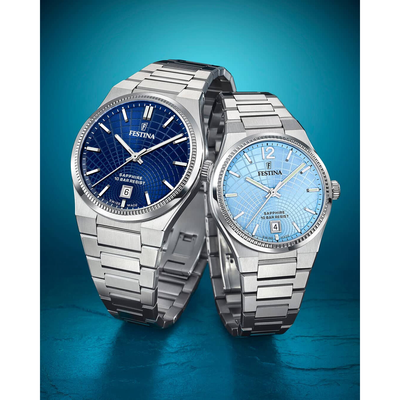 Koperta wykonana z chirurgicznej stali nierdzewnej ma kompaktowy rozmiar 40 mm, co zapewnia elegancję i trwałość na długie lata. Kolekcja Rivé została zaprojektowana z myślą o ponadczasowym stylu. Zegarek Festina Rivé, dzięki smukłej konstrukcji o grubości poniżej 9 mm, nie tylko prezentuje się luksusowo, ale także wygodnie leży na nadgarstku. Model ten wyposażono w stalową bransoletę z bezpiecznym zapięciem motylkowym na zatrzask, co ułatwia codzienne użytkowanie. Obudowa zegarka, z klasą szczelności do 100 metrów, pozwala na korzystanie z niego podczas sportów wodnych, takich jak pływanie.
