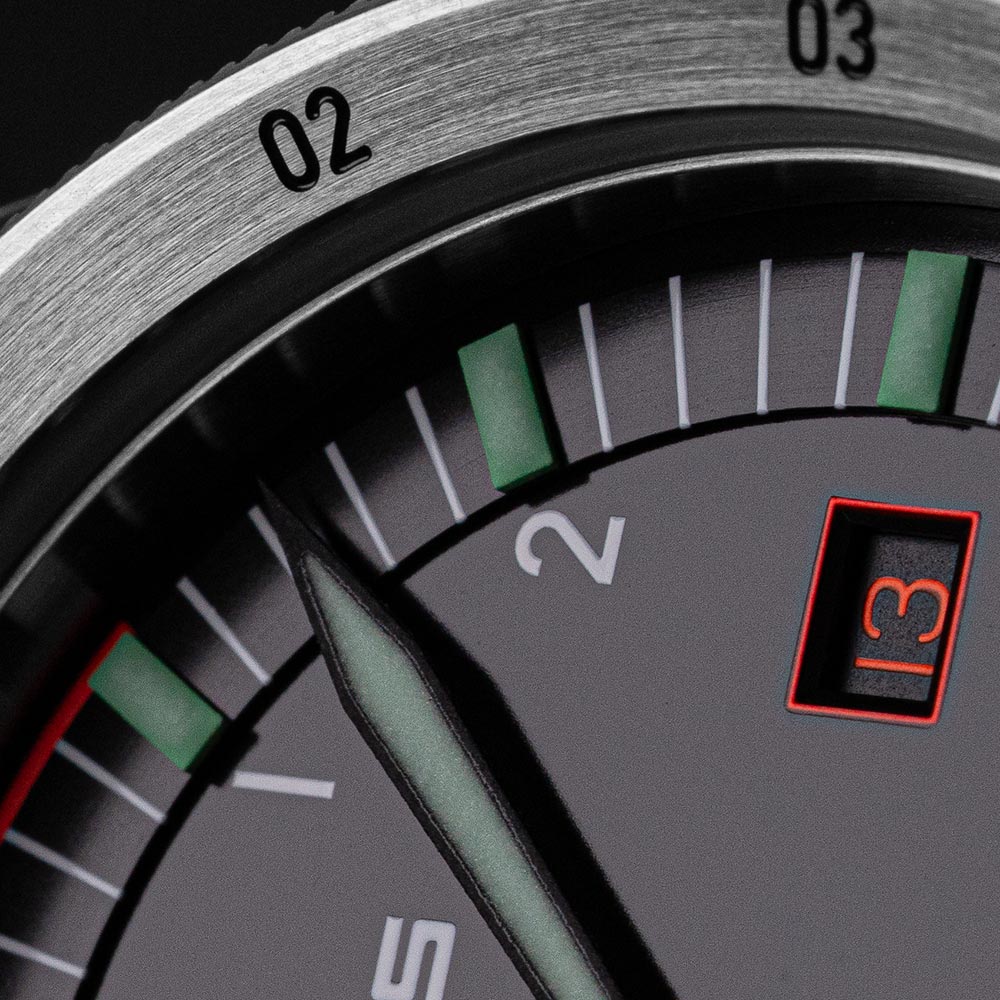 Jego wytrzymała i odporna obudowa wykonana jest z jednako wyśmienitej stali szlachetnej, jedynie w aktualnym rozmiarze. Tarcza, przykryta przezroczystym i nierysującym się szkłem szafirowym z antyrefleksem, ponownie imponuje gabarytem. Posiada czytelne cyfry i indeksy, wskazówki w rodzaju miecza, kultowy, neonowo-pomarańczowy sekundnik, a trójkątowi przy godzinie 12 towarzyszą 2 kropki, podbudowujące czytelność. To zegarek dla podróżników, uwielbiany przez pilotów z całego świata, profesjonalistów i amatorów.