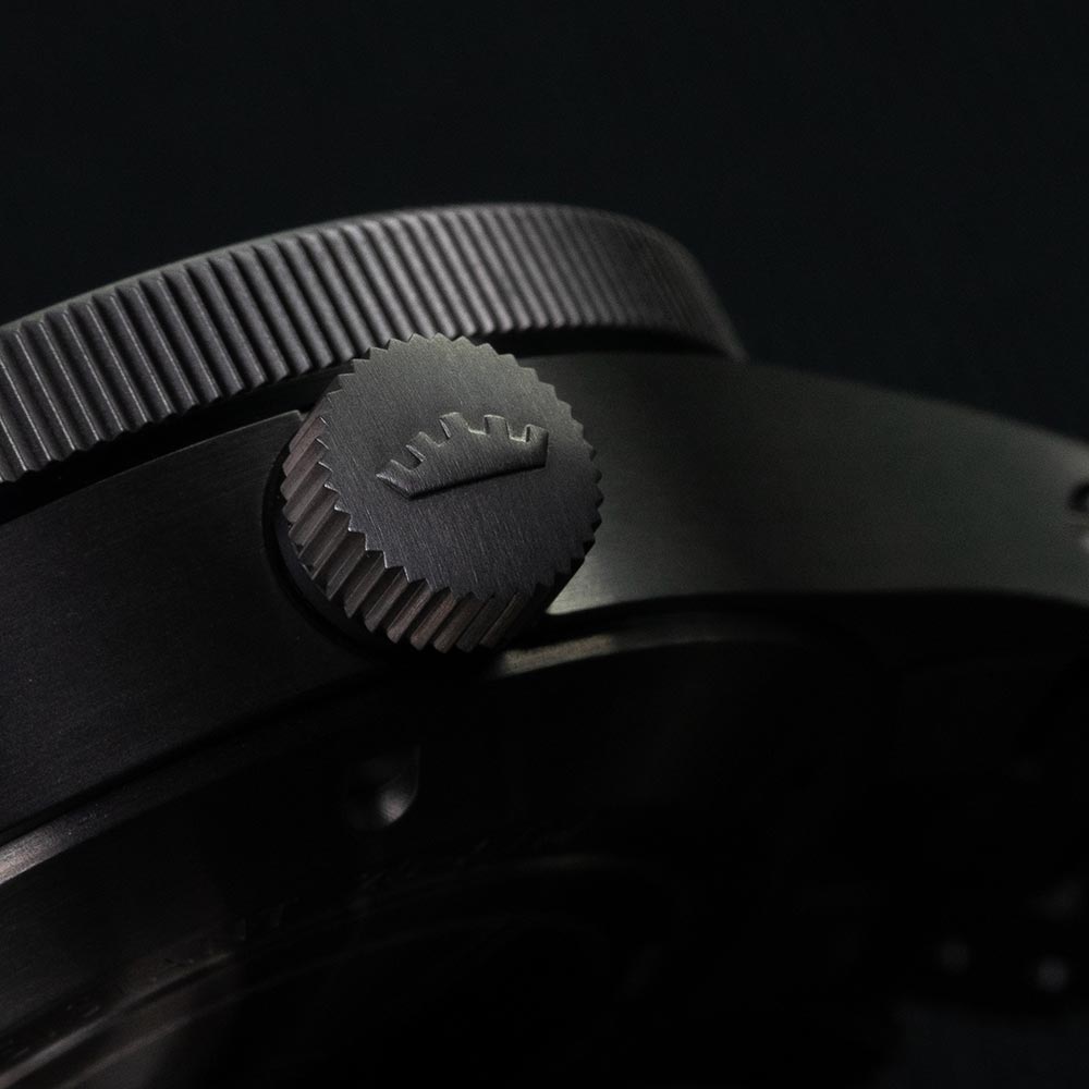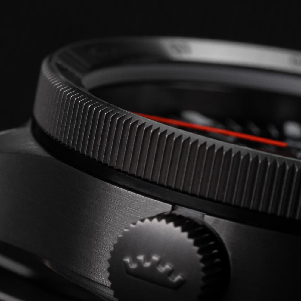 43-milimetrowa obudowa wykonana jest z jednocześnie wytrzymałego i lekkiego tytanu. Tarcza, przykryta przezroczystym i nierysującym się szkłem szafirowym z antyrefleksem, ponownie imponuje gabarytem. Posiada czytelne cyfry i indeksy, wskazówki w rodzaju miecza, kultowy, neonowo-pomarańczowy sekundnik, a trójkątowi przy godzinie 12 towarzyszą 2 kropki, podbudowujące czytelność. To zegarek dla podróżników, uwielbiany przez pilotów z całego świata, profesjonalistów i amatorów.