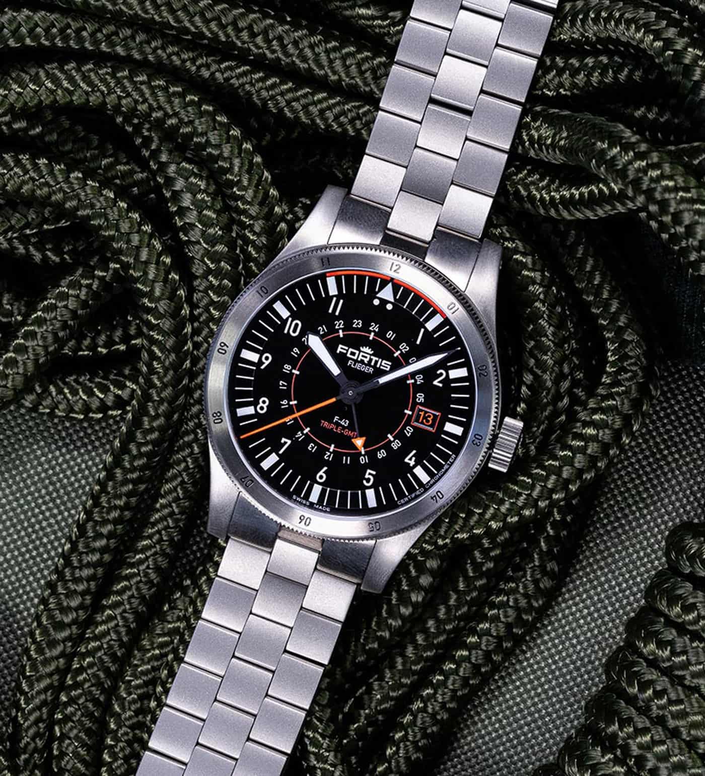 Zegarek męski Fortis Flieger F-43 Triple-GMT F4260000