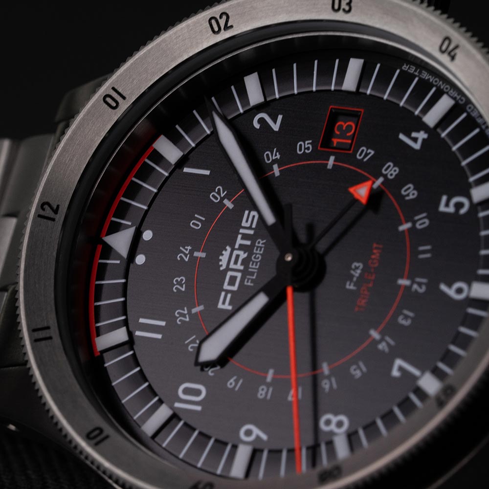 "To nie zegarek typu pilot. To kawałek czasu". Zegarek męski Fortis Flieger F-43 Triple-GMT F4260000 nie jest stworzony na nowo, tylko lepiej niż kiedykolwiek wcześniej. Flieger F-43 Triple-GMT posiada charakterystyczny design inspirowany pierwszym modelem lotniczym z kolekcji Flieger z 1987 roku. Mechanizm zasilający to automatyczny, samozwijający się kaliber WERK 13 z GMT (wyświetlanie trzech stref czasowych) oraz szwajcarskim certyfikatem precyzji COSC Chronometer.