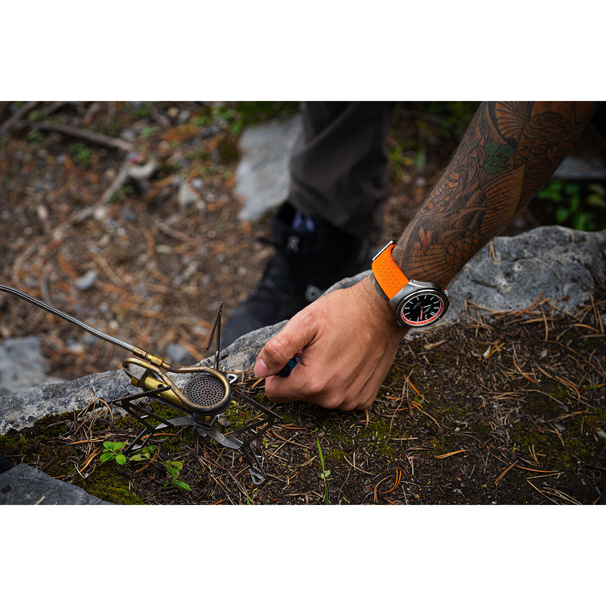 Zegarek męski narzędziowy Fortis Marinemaster M-44 Amber Orange F8120013 to nowa definicja dla zegarka do nurkowania, który "nie jest zegarkiem nurkowym". Nieważne, czy wybierasz się na połów ryb, piesze wędrówki, windsurfing, czy kemping — Fortis stworzył dla Ciebie towarzysza do przygód pod gołym niebem. Nową kolekcję — FORTIS MARINEMASTER. 44-milimetrowa obudowa tego czasomierza nurkowego wykonana jest ze stali z recyklingu. Zgodnie z zapowiedzią producenta w chwili przedstawienia zegarka Fortis Flieger Midnight — pierwszego czasomierza Fortis z kopertą ze stali przetworzonej. Zastosowanie stali nierdzewnej recyklingowej to stała zmiana kursu w kierunku zrównoważonej produkcji, a zarazem gwarancja równie wysokiej trwałości, wytrzymałości oraz ponadczasowego piękna, co w stali szlachetnej. To autentyczny zegarek narzędziowy inspirowany naturą, a dodatkowo — zdefiniowany na nowo.