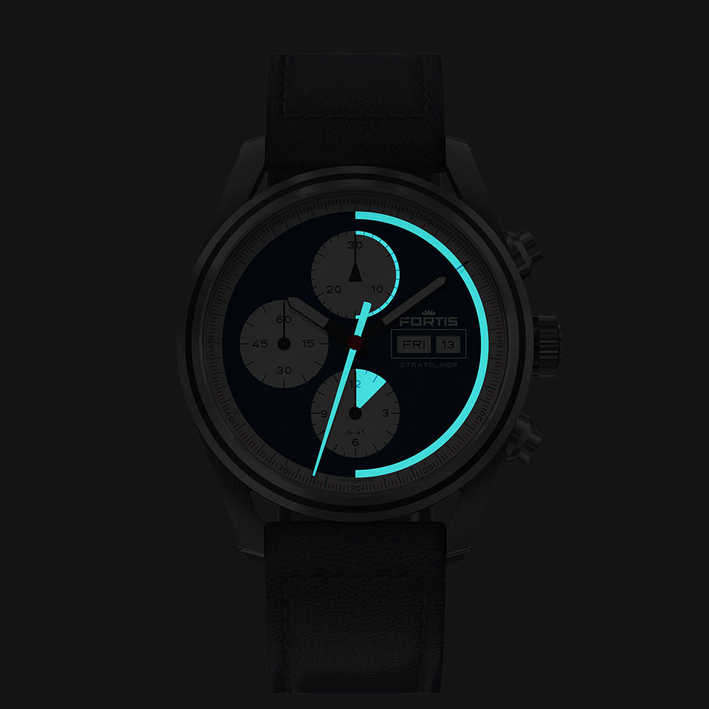 Co więcej, najnowszy Stratoliner jest wyposażony w mechanizm automatyczny z chronografem — WERK 17, który jako pierwszy kaliber manufakturowy został przetestowany w otwartej stratosferze. WERK 17 odbył podróż do stratosfery i z powrotem na Ziemię, aby udowodnić swoją bezkonkurencyjną solidność. Jego koło kolumnowe jest nieprzeciętnie wytrzymałe, a rezerwa chodu wynosi aż 60 godzin. To jedyny zegarek "odporny na kosmos". Na krawędzi dekla umieszczono poświadczenie producenta: "Space Resistant 20 ATM". Konstrukcję mechanizmu Fortis WERK 17 można z zachwytem podziwiać przez ekskluzywny dekiel z przydymionego szkła szafirowego. Kolejnych, wyjątkowych wrażeń dostarcza okrągłe okno, przypominające to w statku kosmicznym. Dzięki niemu użytkownik zyskuje unikalną okazję do wglądu do zegarmistrzowskiego mikrokosmosu.
