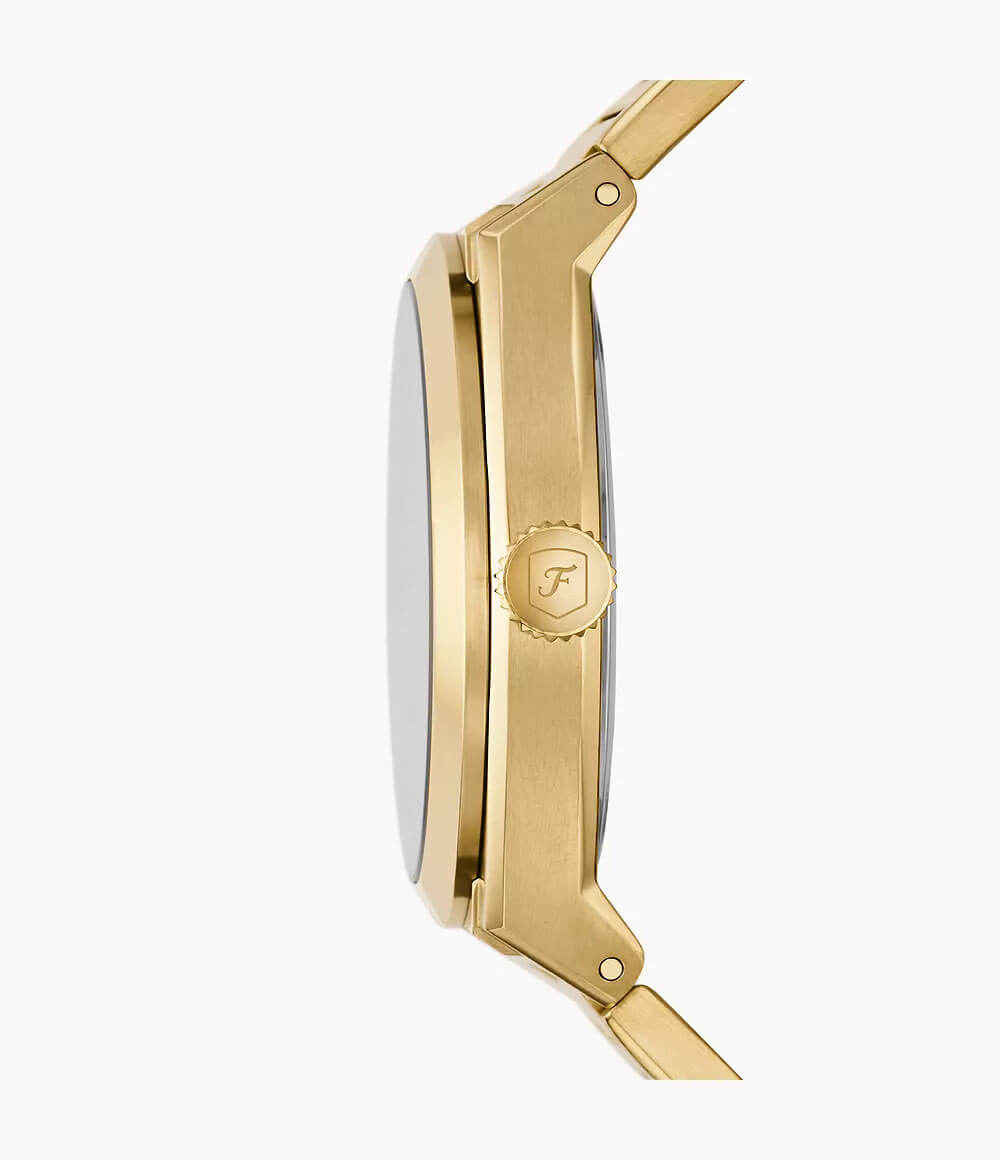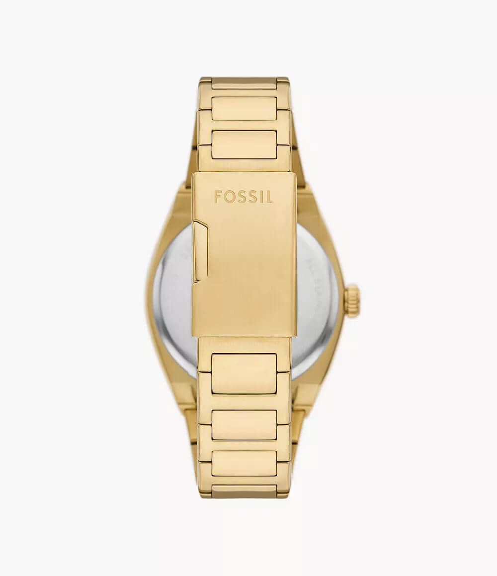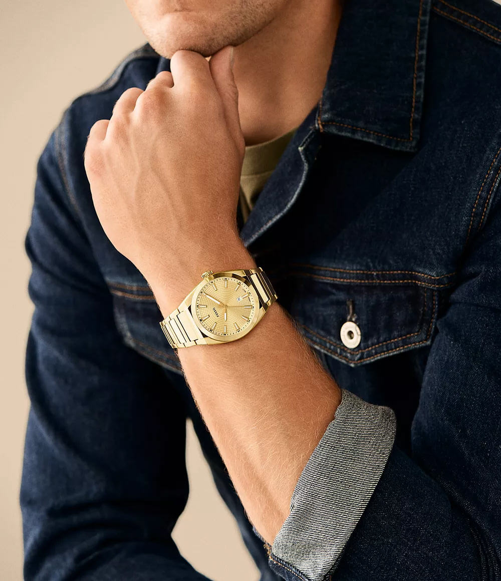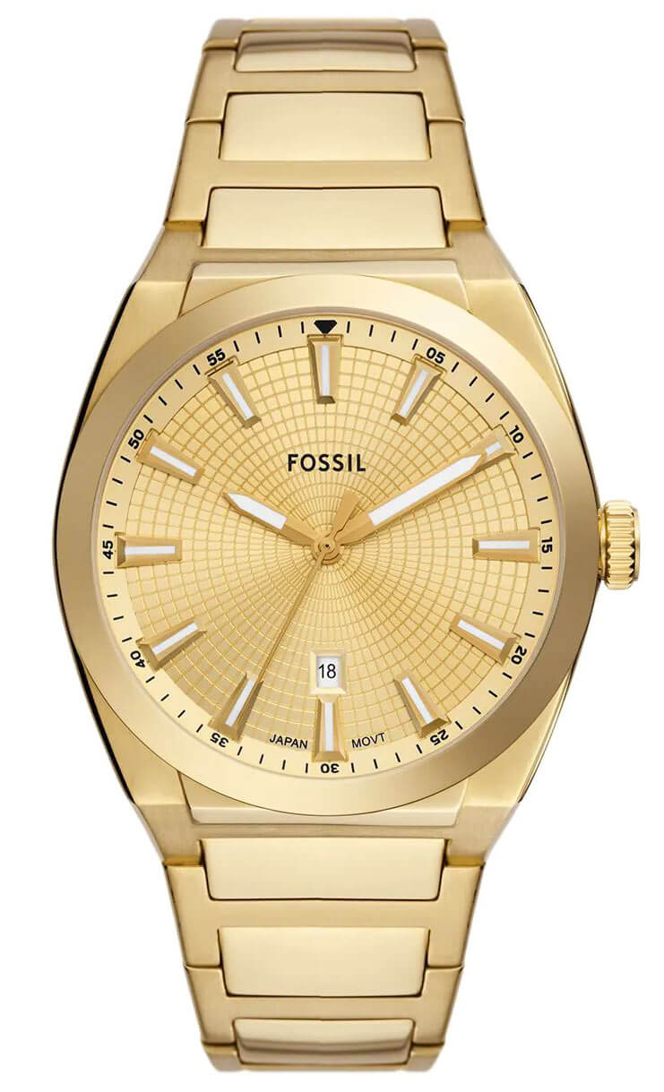 Zegarek męski Fossil Everett FS5965 to esencja klasy i nowoczesnej elegancji, stworzona dla mężczyzn, którzy cenią sobie wyrafinowany styl i wysoką jakość wykonania. Jego bransoleta i koperta w kolorze złotym tworzą efektowną całość, doskonale podkreślającą charakter każdego outfitu – od casualowego po formalny. Model ten wyróżnia się czystym, geometrycznym designem, który idealnie wpisuje się w aktualne trendy męskiej mody, a jednocześnie zachowuje ponadczasowy charakter. Koperta o średnicy 42 mm zapewnia idealną równowagę między nowoczesnym wyglądem a klasyczną elegancją, dzięki czemu Fossil Everett to czasomierz zarówno efektowny, jak i uniwersalny. Jego tarcza w odcieniu złota z giloszowanym wzorem dodaje mu unikalnej faktury i głębi, a delikatnie zaznaczone indeksy i wskazówki zapewniają doskonałą czytelność. Całość podkreśla subtelnie umieszczone okienko datownika, które dodaje zegarkowi funkcjonalności bez zaburzania jego minimalistycznego stylu.