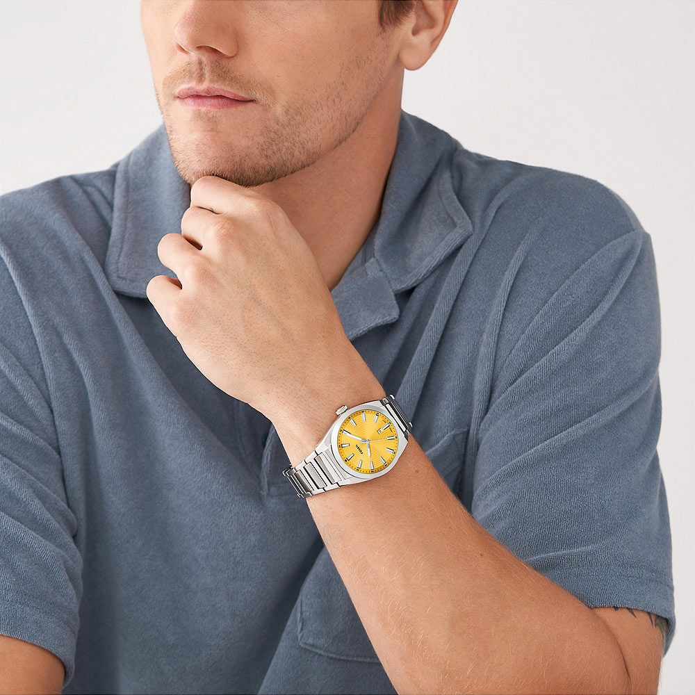 Zaczerpnij świeżej energii z oazy regeneracyjnej Fossil! Nowy Fossil Everett 3 Hand Date Yellow FS5985 to elegancki zegarek męski z tarczą w optymistycznym odcieniu cytrynowej żółci, który pomoże Ci się jednocześnie ożywić duszę, odpocząć od stresów dnia codziennego i wyróżnić.