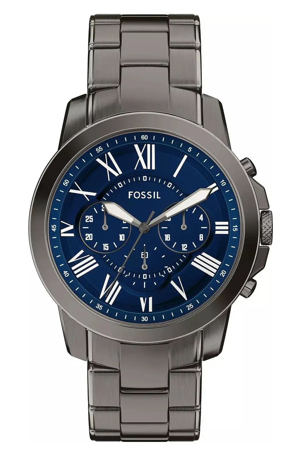 Zegarek męski Fossil Grant Chronograph FS6133 to wyrazisty model sportowy, który łączy klasyczną stylistykę z nowoczesnym, zdecydowanym charakterem. Koperta o średnicy 44 mm nadaje mu solidną prezencję na nadgarstku, a stalowa bransoleta w ciemnym odcieniu podkreśla techniczny, męski styl. Granatowa tarcza z rzymskimi indeksami tworzy ciekawy kontrast między elegancją a sportową funkcjonalnością, dzięki czemu zegarek sprawdza się zarówno na co dzień, jak i w bardziej dopracowanych stylizacjach.