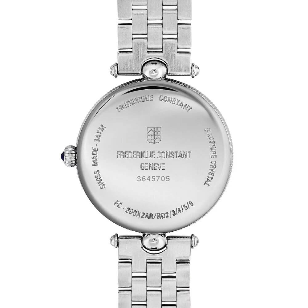 Projektanci Frederique Constant zadbali, aby materiały użyte w tym modelu były nie tylko luksusowe, ale także trwałe i wygodne w codziennym użytkowaniu. Koperta o średnicy 30 mm została wykonana ze stali szlachetnej, dzięki czemu zegarek jest odporny na upływ czasu i zachowuje swój nieskazitelny wygląd przez lata. Jego niezwykłą lekkość i wygodę na nadgarstku zapewnia stalowa bransoleta z ogniwami w kształcie koralików, które sprawiają, że czasomierz ten nosi się jak elegancką bransoletkę. Komfort użytkowania podkreśla również szafirowe szkło, znane ze swojej odporności na zarysowania, co oznacza, że tarcza zegarka pozostanie perfekcyjna nawet po wielu latach noszenia.