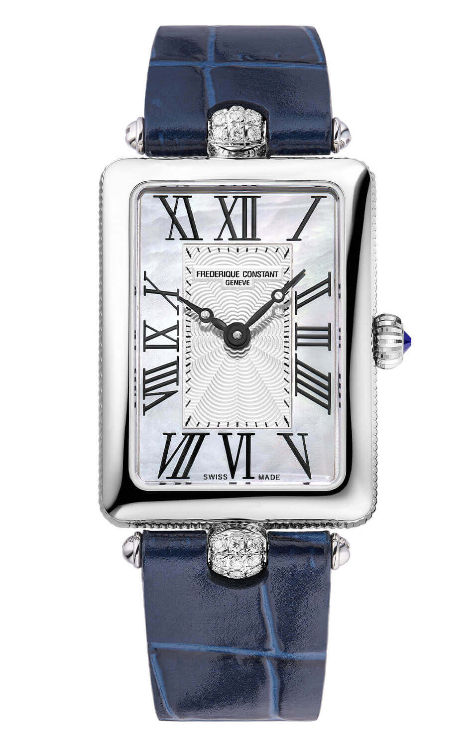 Zaprezentowana na rynku po raz pierwszy w 2007 roku linia Frederique Constant Classics Art Déco cieszy się dużym i stałym zainteresowaniem aż do chwili obecnej. W 2022 roku obudowy klasycznych zegarków w stylu lat 20. Frederique Constant Classics Art Deco Carree ukazują się smuklejsze, zyskując nowe, bardziej szlachetne oraz opływowe proporcje. Powyższy damski model w stylu retro Frederique Constant FC-200MPW2AC2D6 należy do jednej z trzech nowych wersji, które na różny sposób łączą prawdziwą masę perłową z diamentami. Nadal zachowuje on silny klasyczny styl, którym cechuje się giloszowana tarcza i ozdoba w formie kaboszonu wieńcząca koronkę.
