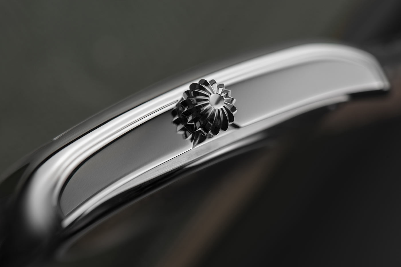 Pośrodku tarczy klasycznego zegarka w stylu art deco obecne są wyrafinowane wykończenia. Prostokąt, który precyzyjnie odpowiada proporcjom koperty 30,4 × 33,3 mm, jest zamknięty przez skalę minutową „chemin de fer”, słynną w latach dwudziestych XX wieku i ruchu Art Deco. Niezwykle delikatny wzór rowków pozostaje widoczny tylko dla właściciela. To właśnie tego rodzaju niuanse sprawiają, że zestaw 3 wskazówek zapewnia lepszy kontrast. Wskazówki godzinowa i minutowa są skonstruowane w stylu Dauphine, który jest również typowy dla modeli z minionego wieku. Prosta, wysublimowana forma umożliwia idealny odczyt czasu zawsze i wszędzie, dzięki dwóm fasetkom znajdującym się pod różnymi kątami tak, aby co najmniej jedna z nich zawsze odbijała światło.