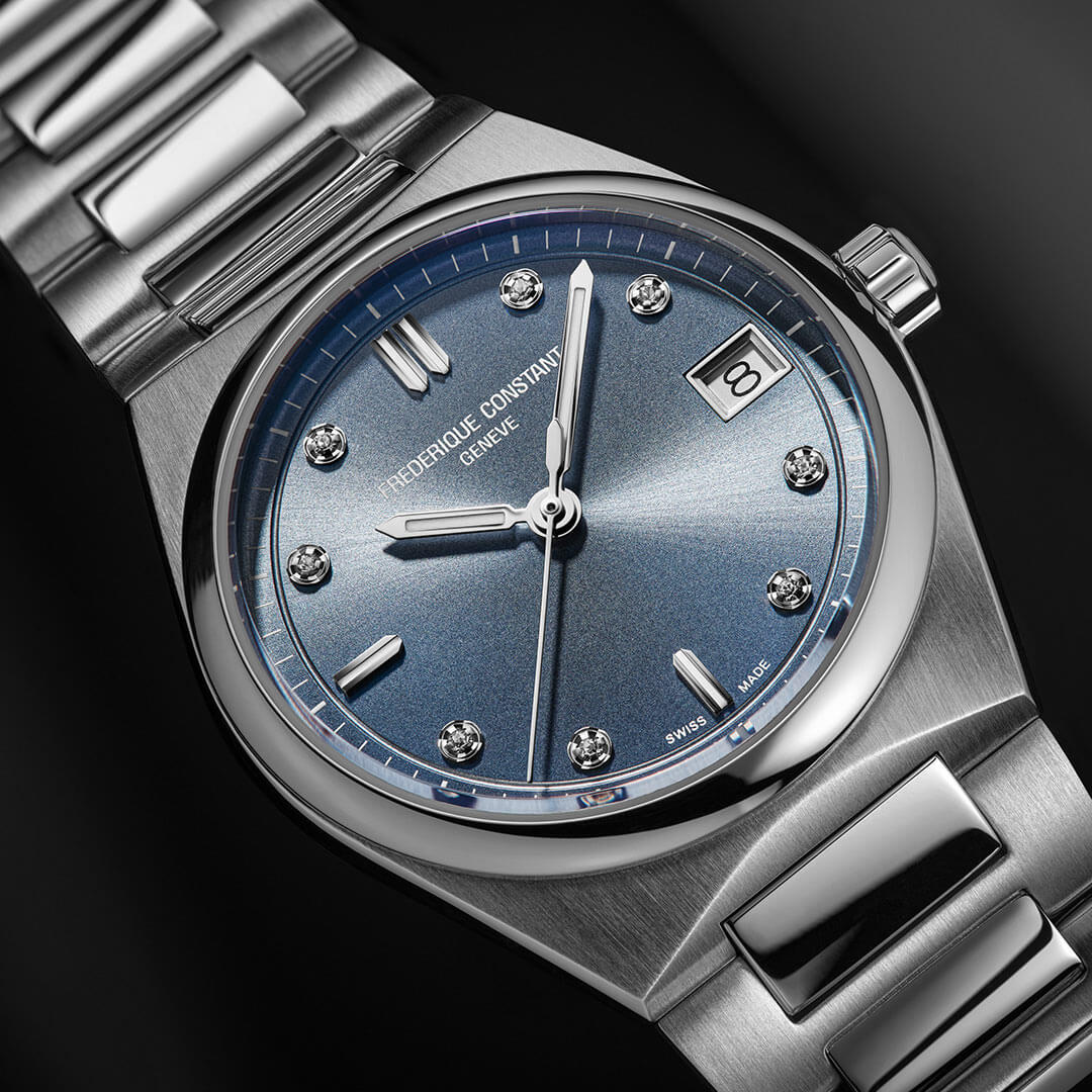 Zegarek Frederique Constant FC240LND2NH26B z diamentami wyróżnia się doskonałą jakością wykonania, będąc stworzony z wytrzymałej stali szlachetnej. Jego solidna, bransoleta z zapięciem motylkowym zapewnia komfort noszenia. Błyszczący bezel przyciąga wzrok, podkreślając luksusowy charakter zegarka. Pod twardym, odpornym na zarysowania szkłem szafirowym znajduje się słoneczna, niebieska tarcza ozdobiona subtelnymi detalami, które nadają jej wyjątkowy wygląd. Osiem lśniących diamentów zdobi pełne punkty godzinowe, a datownik zwiększa funkcjonalność tego czasomierza. To ponadczasowy model, który harmonijnie łączy klasyczny design z nowoczesnym akcentem, stanowiąc doskonały wybór dla kobiet ceniących finezję i precyzję. Szwajcarski mechanizm gwarantuje niezawodność, a elegancka forma zegarka podkreśla wyjątkowy styl jego właścicielki.