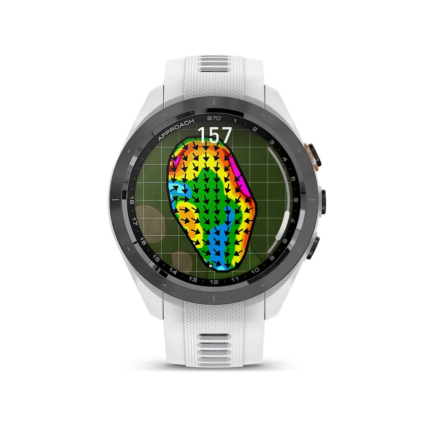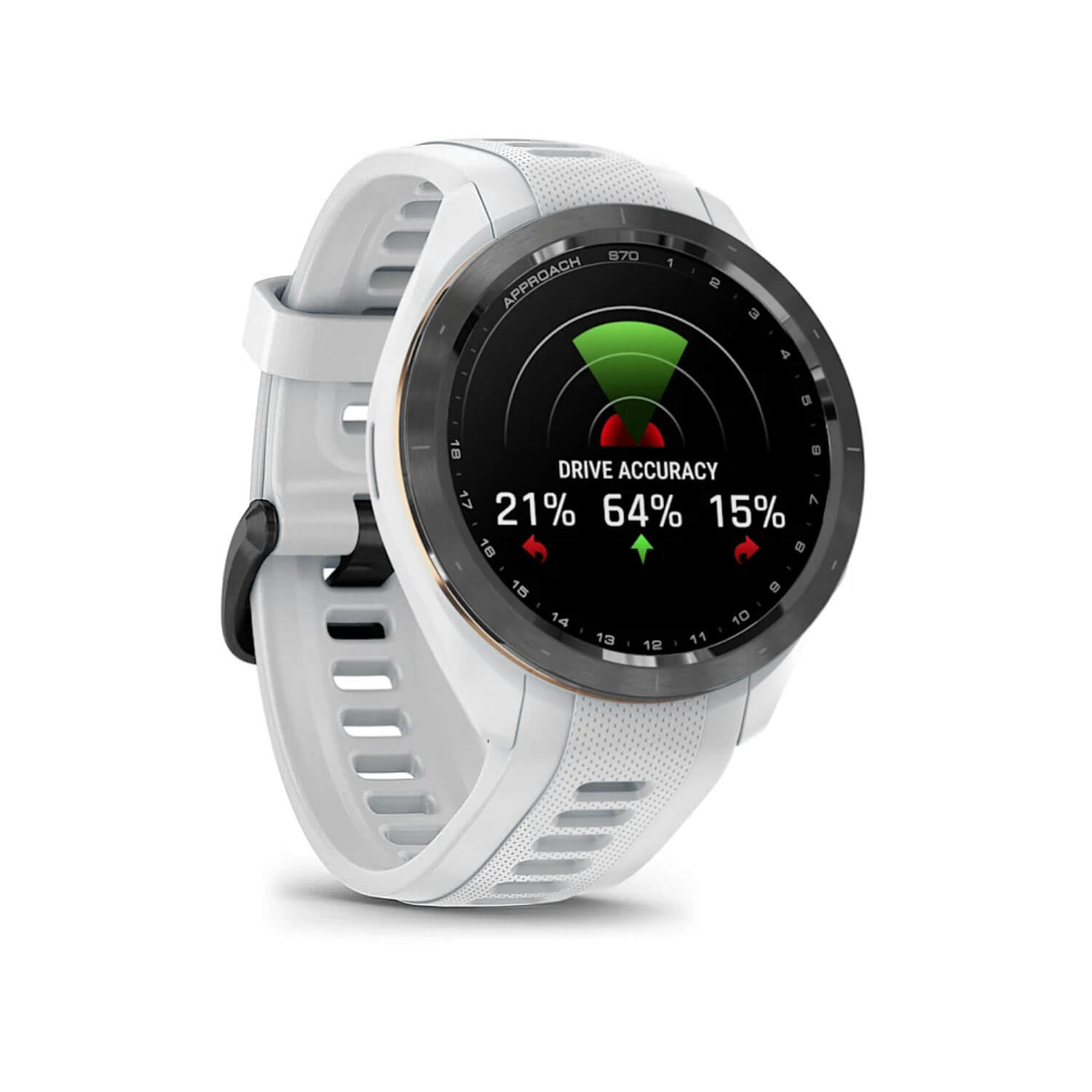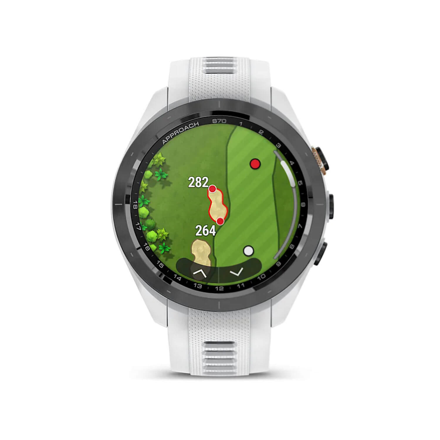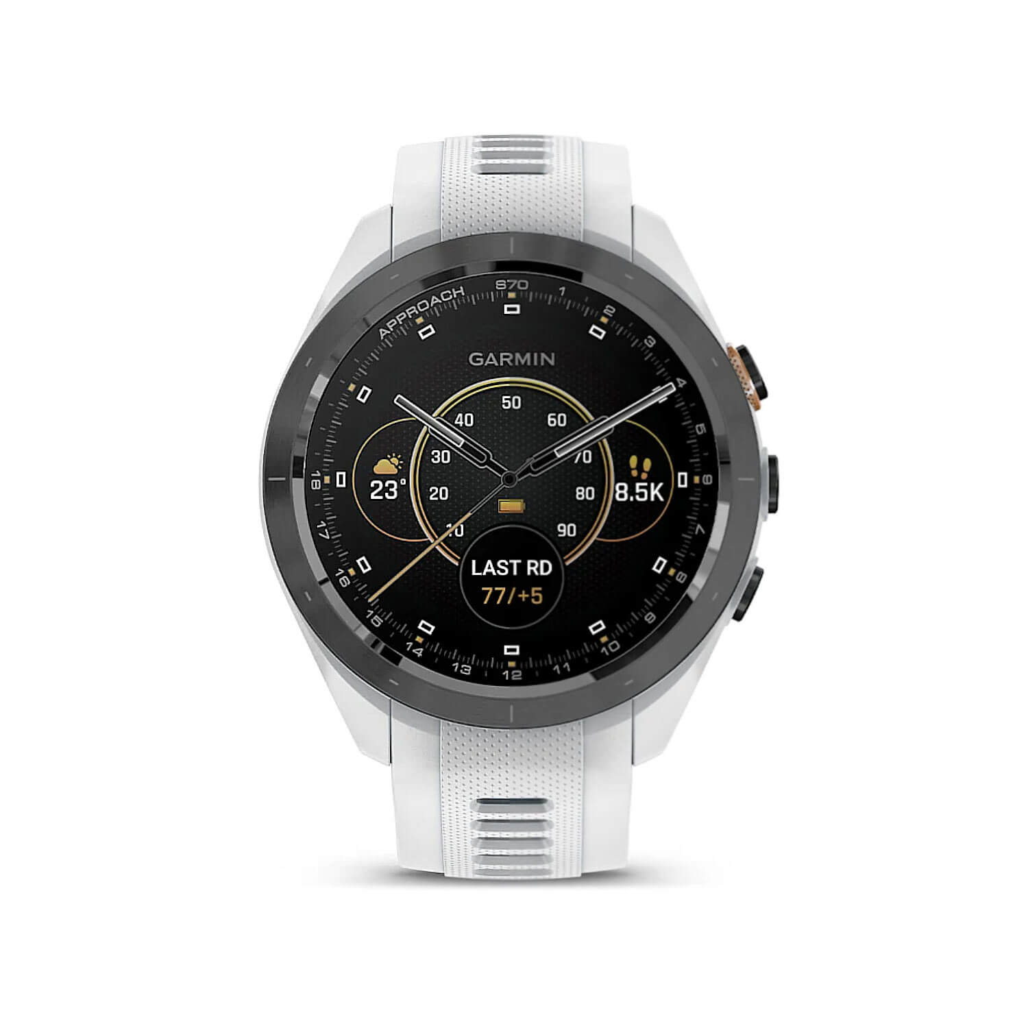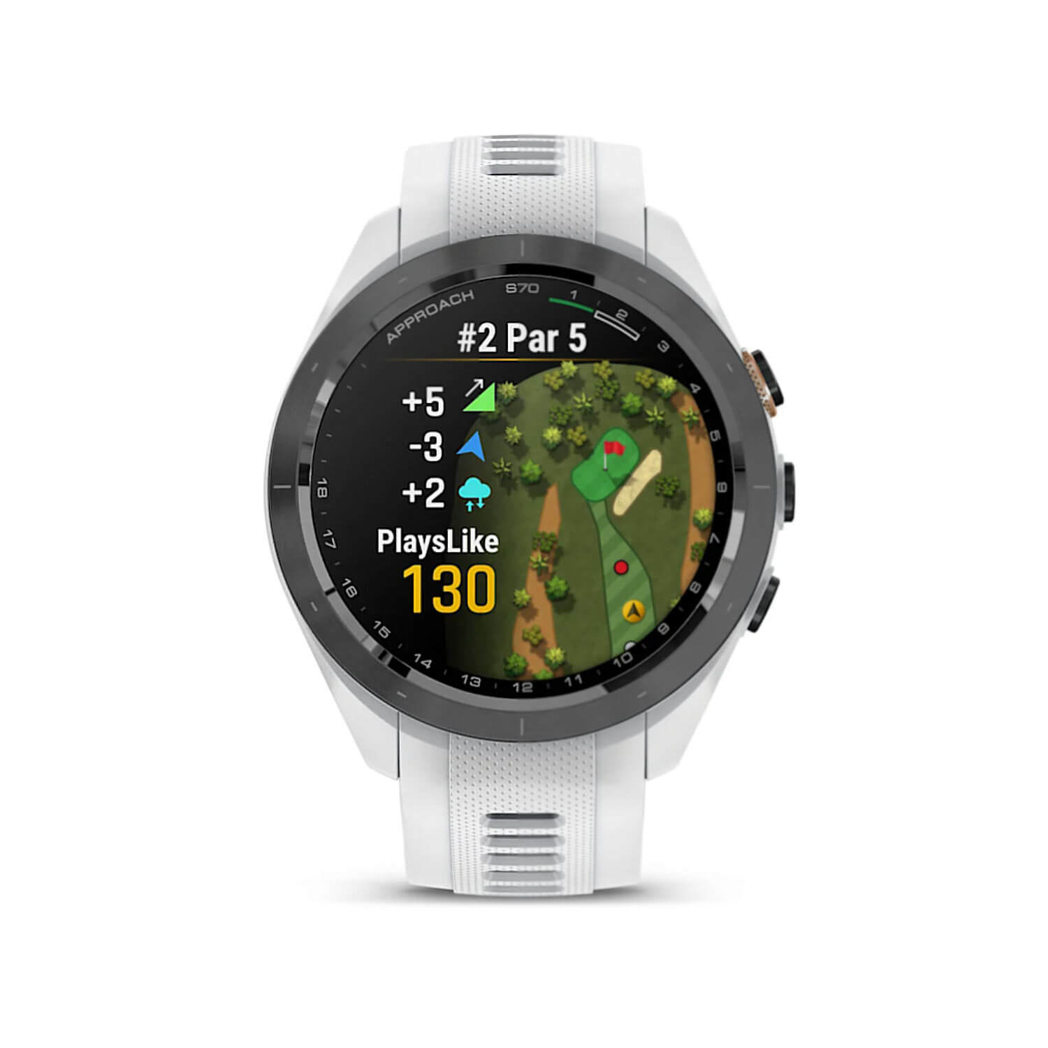 Approach S70 oferuje rozbudowane funkcje golfowe: Virtual Caddie 2.0 z analizą w czasie rzeczywistym, PlaysLike Distance z uwzględnieniem warunków atmosferycznych oraz zaawansowane wizualizacje greenów i przeszkód. Kolorowy ekran AMOLED o przekątnej 1,2″ zapewnia wyjątkową czytelność map, statystyk i alertów nawet w pełnym słońcu. Urządzenie obsługuje GNSS – GPS, GLONASS i Galileo – gwarantując precyzyjne śledzenie lokalizacji na każdym etapie gry.