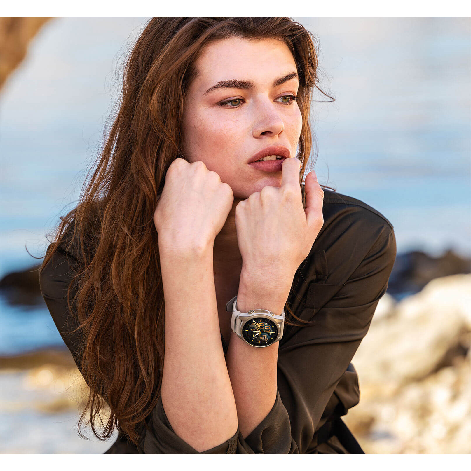 Ta zaprojektowana z myślą o ekstremalnych warunkach konstrukcja jest odporna na wodę, wstrząsy i skrajne temperatury. Wykonana z metalu i tytanu koperta oraz szafirowe szkło AMOLED 1,4” spełniają normy militarne, co gwarantuje niezawodność zarówno pod wodą, jak i w górach.