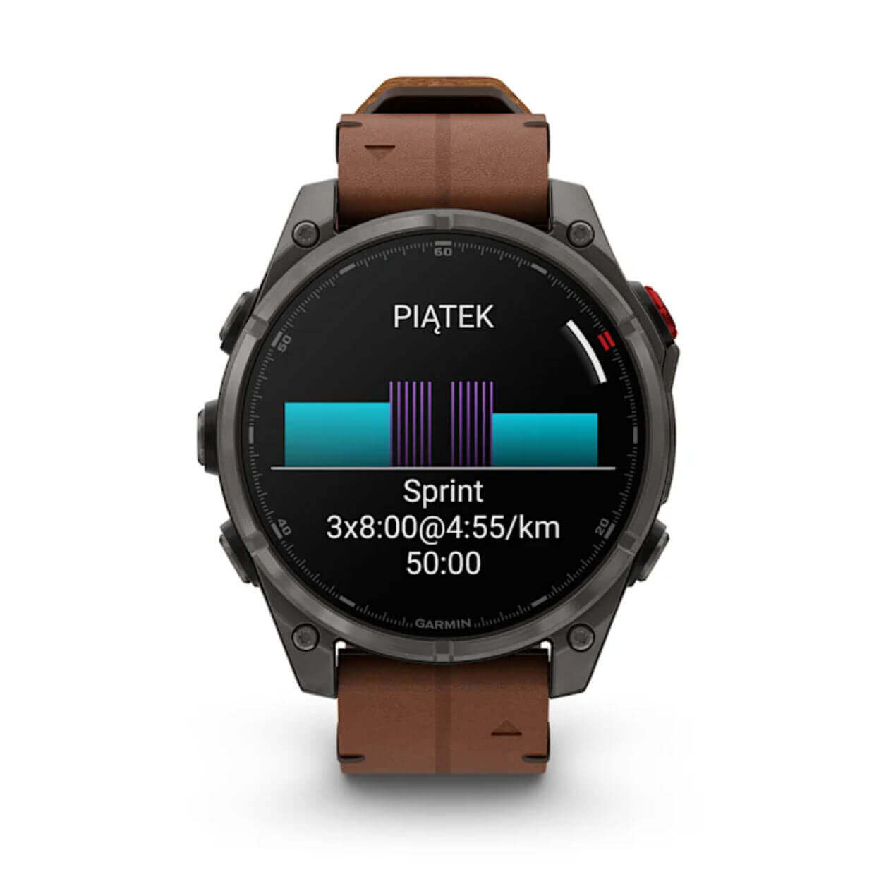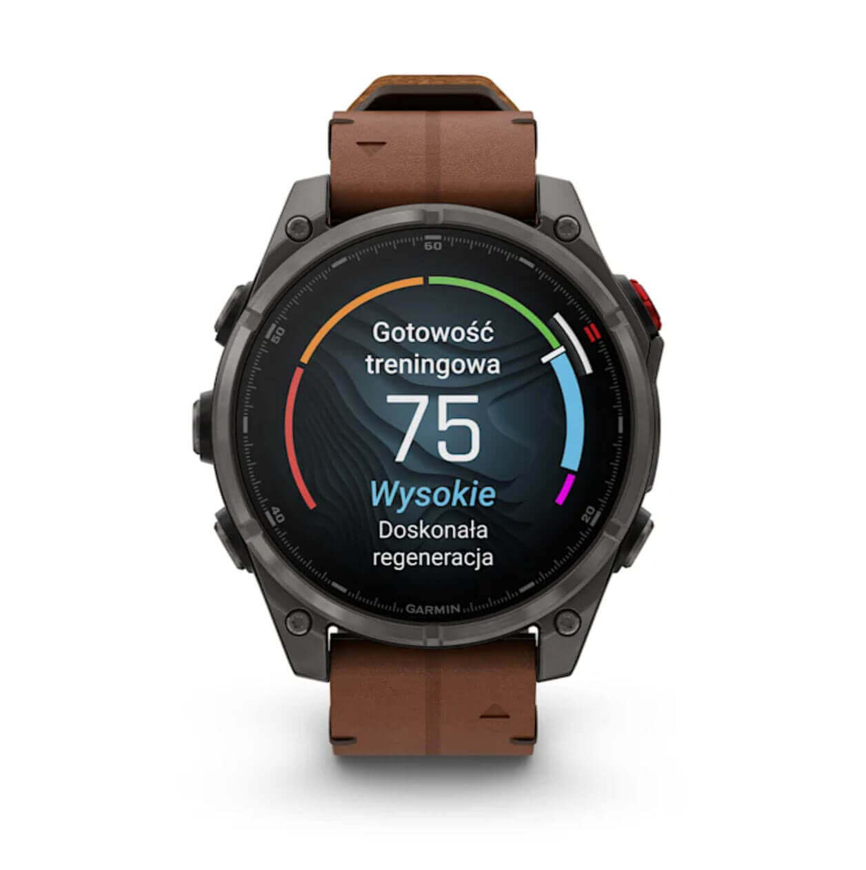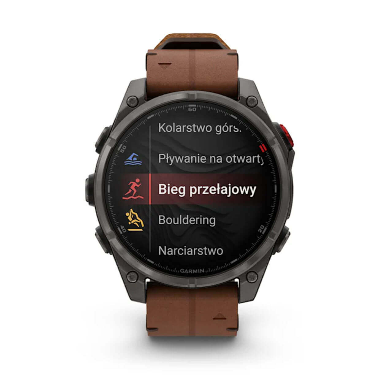 Dotykowy ekran AMOLED o przekątnej 1,4″ oferuje żywe kolory, bardzo wysoką jasność i czytelność. Pokrycie szkłem Power Sapphire™ zapewnia odporność na zarysowania, a tytanowy bezel z czarną powłoką DLC oraz metalowa osłona czujnika gwarantują trwałość w terenie. Smartwatch działa do 15 dni w trybie zegarka i do 44 godzin z GPS, co pozwala na długie wyprawy bez ładowania – idealny towarzysz przygód i treningu.
