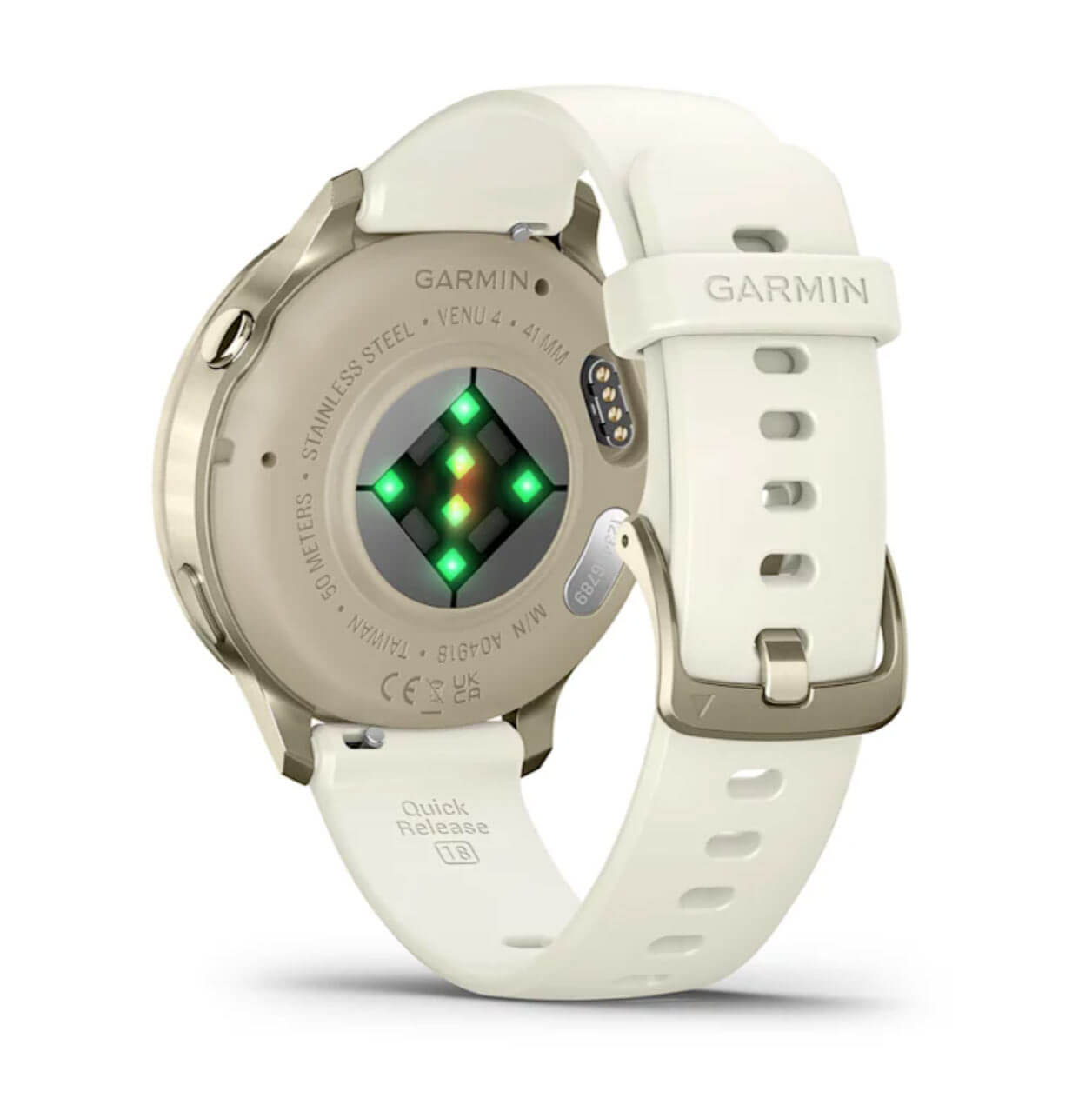 Zegarek Garmin Venu 4 posiada dotykowy wyświetlacz AMOLED 1,2″, który zapewnia doskonałą czytelność w każdych warunkach – także na zewnątrz. Obudowa została wykonana z polimeru wzmocnionego włóknem szklanym, a ramka ze stali nierdzewnej, która pokryta jest powłoką w kolorze szampańskiego złota. Bateria działa do 10 dni w trybie zegarka i do 15 godzin w trybie tylko GPS, co sprawia, że smartwatch Garmin doskonale sprawdza się w podróży i w intensywnym trybie dnia. Zintegrowany głośnik i mikrofon umożliwiają prowadzenie rozmów telefonicznych oraz korzystanie z asystenta głosowego.