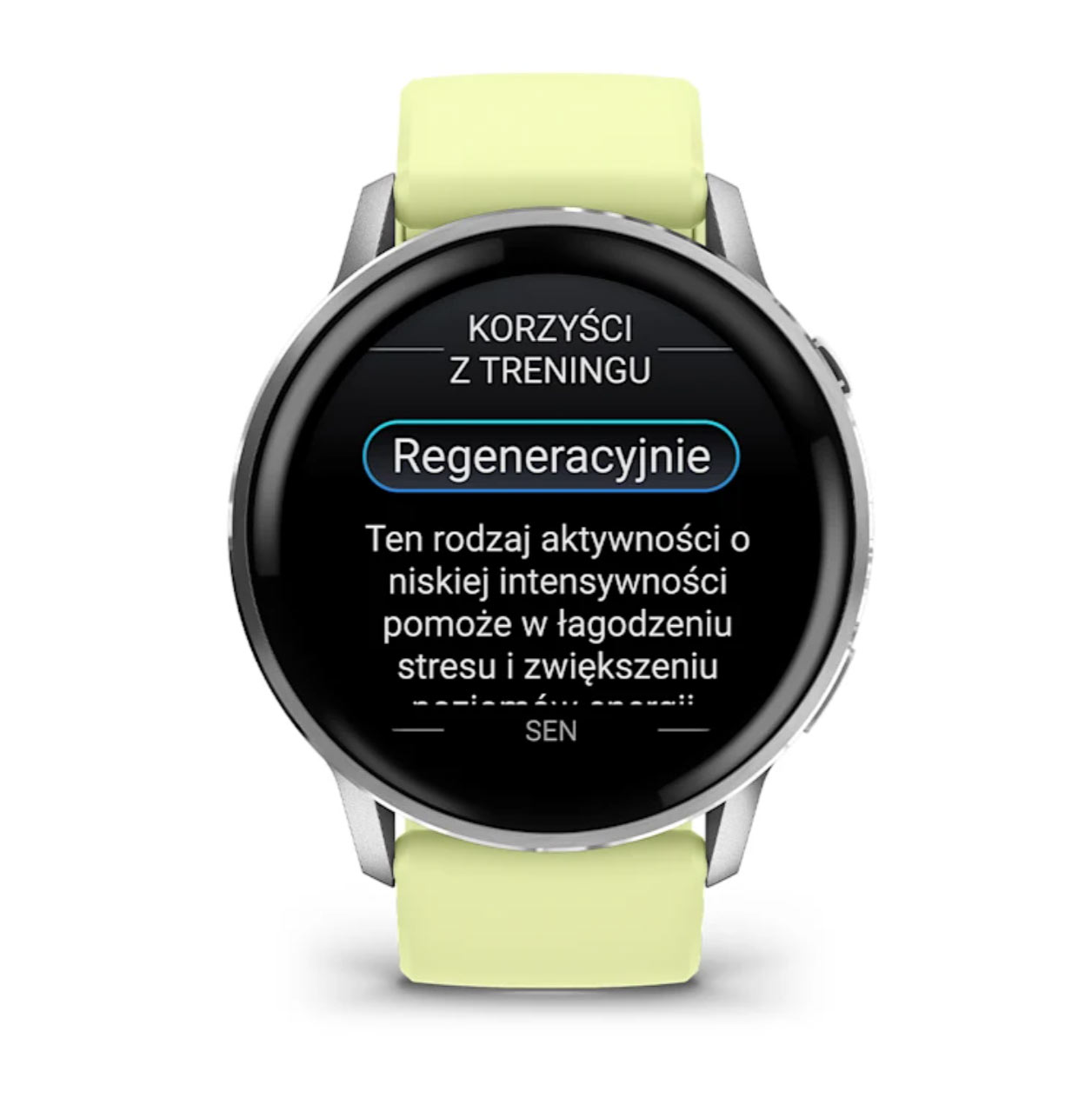 - Raport poranny – informacje o jakości snu, kalendarzu i kondycji już po przebudzeniu