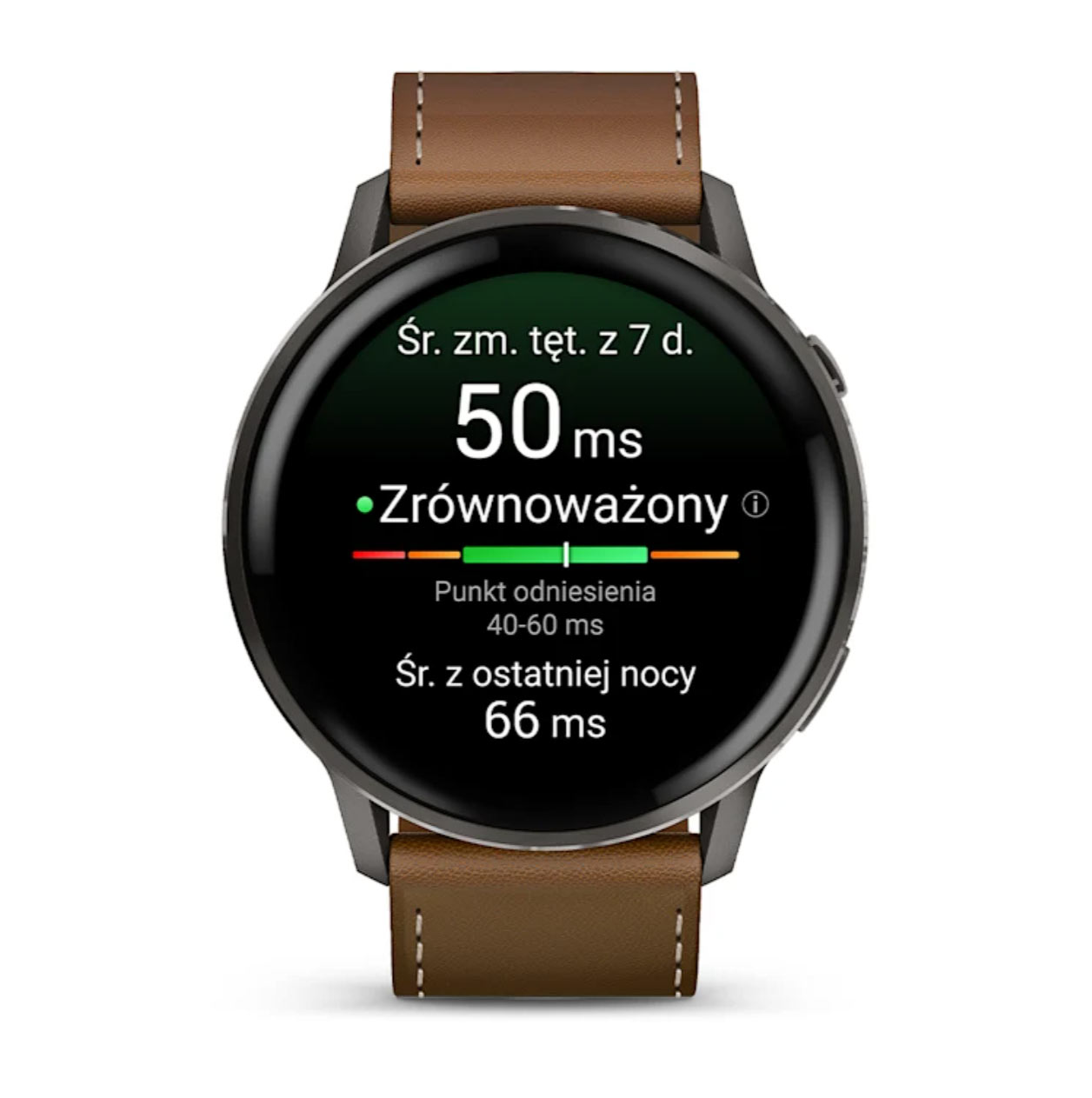 Garmin Venu 4 z pulsoksymetrem to nie tylko smartwatch – to zaawansowane narzędzie zdrowotne i sportowe dla profesjonalistów i amatorów. Mierzy tętno, poziom stresu, Body Battery™, pułap tlenowy (VO2 max), jakość i fazy snu, a także umożliwia rejestrowanie EKG oraz analizę wskaźnika HRV. Dla mężczyzn aktywnych fizycznie zegarek oferuje ponad 30 trybów sportowych i animowane treningi HIIT, jogi, pilatesu i ćwiczeń siłowych – wszystko po to, by wspierać różnorodne cele treningowe.