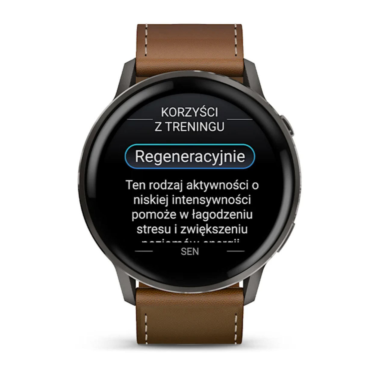 Czarny smartwatch Garmin Venu 4 – 45 mm 010-03014-03 to wszechstronny zegarek nowej generacji, zaprojektowany dla Panów, którzy chcą monitorować zdrowie, trenować efektywnie i być stale w kontakcie – bez kompromisów w kwestii stylu. Model ten kontynuuje rozwój funkcji znanych z poprzednich generacji – takich jak prowadzenie rozmów telefonicznych z poziomu nadgarstka – i wzbogaca je o nowości, jak pomiar EKG czy jeszcze bardziej rozbudowane funkcje regeneracyjne. Lekka, ergonomiczna konstrukcja, wyświetlacz AMOLED o wysokiej rozdzielczości oraz kompleksowe narzędzia do monitorowania kondycji czynią z Venu 4 niezawodnego towarzysza aktywnego stylu życia – także w męskim wydaniu.