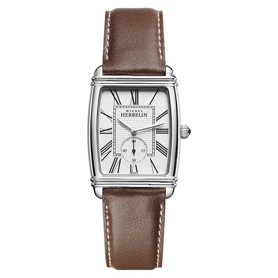Zegarek męski Herbelin Art Deco 1063808MA to wyrafinowana interpretacja klasyki inspirowanej początkami francuskiego zegarmistrzostwa, w której proporcje i detale odgrywają pierwszoplanową rolę. Jasna tarcza z subtelnym giloszem została elegancko wydzielona czarną ramką, a mały sekundnik umieszczony na godzinie szóstej wprowadza rytm i podkreśla charakter całej kompozycji.