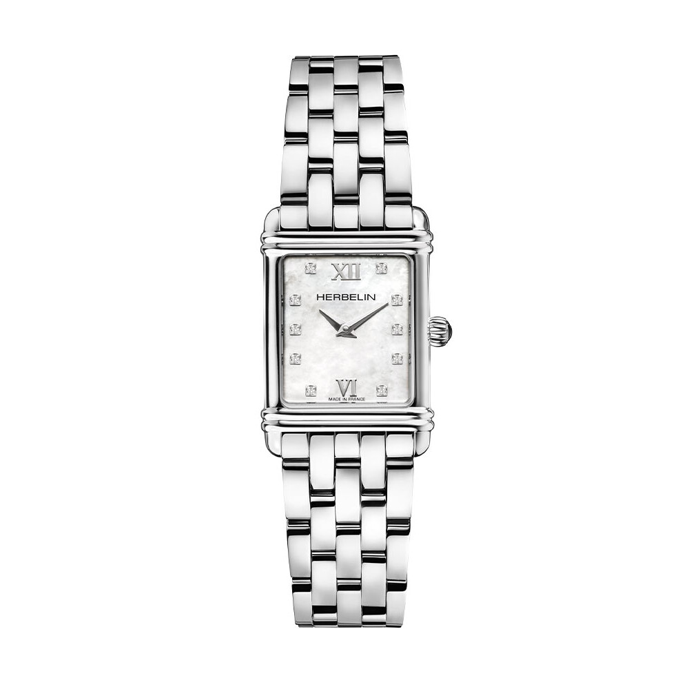 Zegarek damski Herbelin Art Deco 17478B59, inspiracją do stworzenia tego modelu były pierwsze zegarki produkowane przez rodzinną firmę Herbelin. Art Déco o klasycznym designie uwodzi swoją niezwykle kolorową tarczą. Wykonana z masy perłowej i ozdobiona błyszczącymi cyrkoniami.