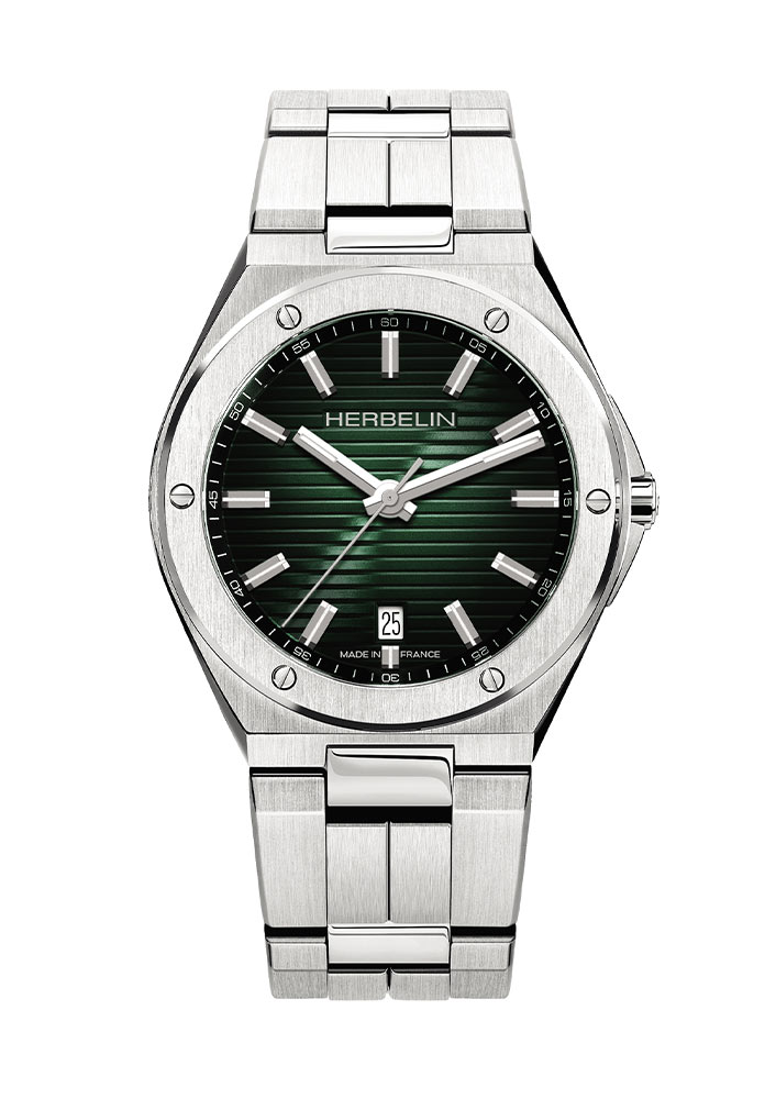 Zegarek został wyposażony w stalową kopertę o średnicy 40,5 mm. Jej sześciokątny kształt częściowo maskuje okrągły pierścień ozdobiony sześcioma śrubkami. Zieloną tarczę udekorowano poprzecznymi pasami. Na jej powierzchnię zaimplementowano fasetowe indeksy, które idealnie współgrają ze wskazówkami o tej samej stylistyce. Układ wskazań zabezpiecza szkło szafirowe z powłoką antyrefleksyjną. Wskazówki w ruch wprawia sprawdzony mechanizm kwarcowy firmy Ronda. Oprócz aktualnej godziny z tarczy można odczytać dzień miesiąca. Okienko od tego indykatora usytuowane jest na godzinie szóstej.
