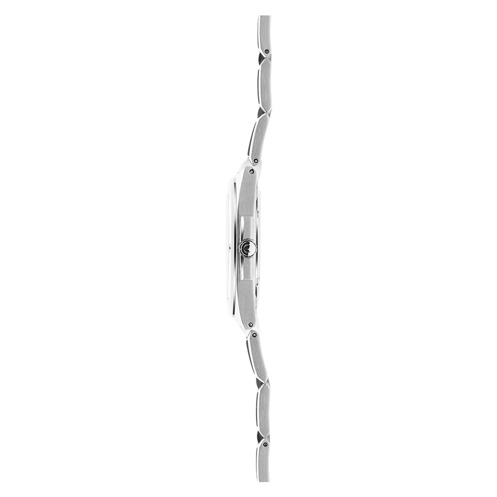 Zegarek został wyposażony w stalową kopertę o średnicy 33 mm, w kolorze srebrnym. Na kopercie znajduje się okrągły pierścień ozdobiony sześcioma śrubkami. Tarczę udekorowano poziomymi pasami i wyposażono w funkcję datownika na godzinie szóstej. Na jej powierzchnię zaimplementowano fasetowe indeksy, które idealnie współgrają ze wskazówkami o tej samej stylistyce. Modna kolorystyka idealnie wpisuje się w obecne trendy. Układ wskazań zabezpiecza szkło szafirowe z powłoką antyrefleksyjną. Wskazówki w ruch wprawia sprawdzony mechanizm Ronda 785 kwarcowy na baterię.