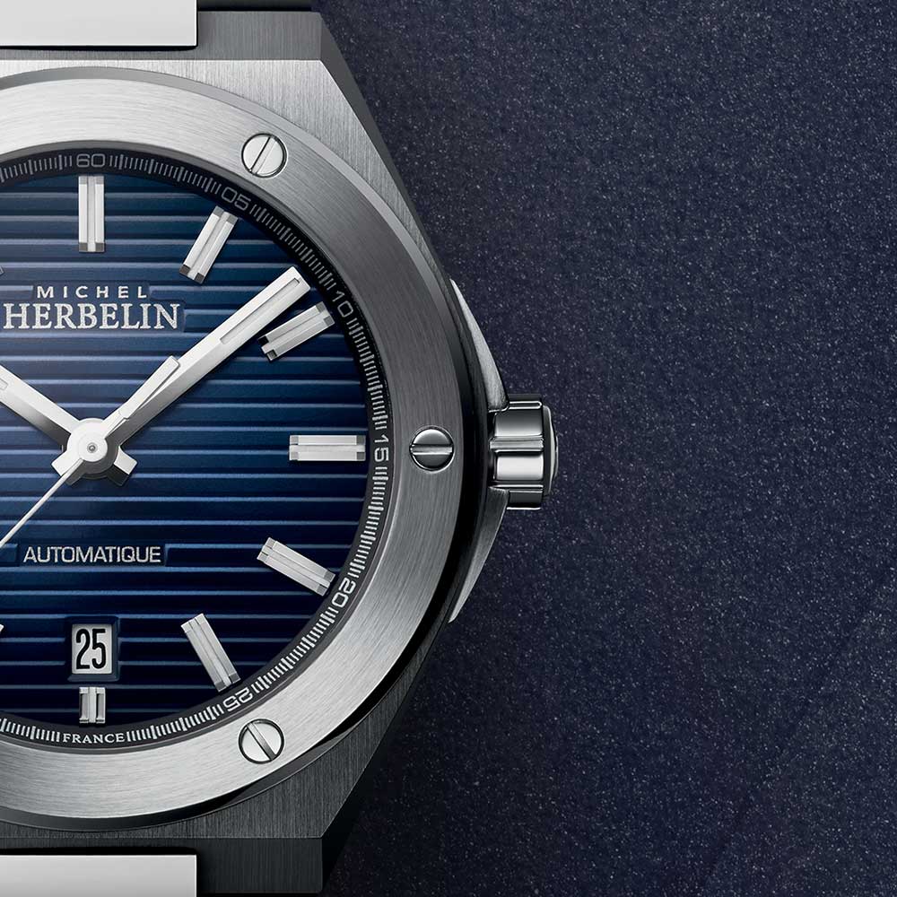 Zegarek został wyposażony w stalową kopertę o średnicy 40,5 mm. Jej sześciokątny kształt częściowo maskuje okrągły pierścień ozdobiony sześcioma śrubkami. Niebieską tarczę udekorowano poziomymi pasami. Na jej powierzchnię zaimplementowano fasetowe indeksy, które idealnie współgrają ze wskazówkami o tej samej stylistyce. Modna kolorystyka idealnie wpisuje się w obecne trendy. Układ wskazań zabezpiecza szkło szafirowe z powłoką antyrefleksyjną. Wskazówki w ruch wprawia sprawdzony mechanizm Sellita SW200-1 z automatycznym naciągiem sprężyny napędowej. Kaliber legitymujący się 38-godzinną rezerwą chodu działa z częstotliwością 4 Hz. Jego pracę można podziwiać przez transparentny dekiel.
