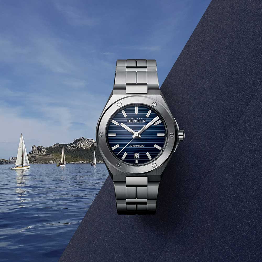 Herbelin Cap Camarat 1645B15 to elegancki zegarek zachowany w sportowej stylistyce rodem z lat 70. minionego stulecia. Jego wyrafinowana stylistyka nawiązuje do kultowego modelu z przeszłości. Inspiracją do powstania owej kolekcji był przylądek Cap Camarat, z którego rozpościera się widok na przepiękną plażę Pampelonne, usytuowaną nieopodal Saint-Tropez.