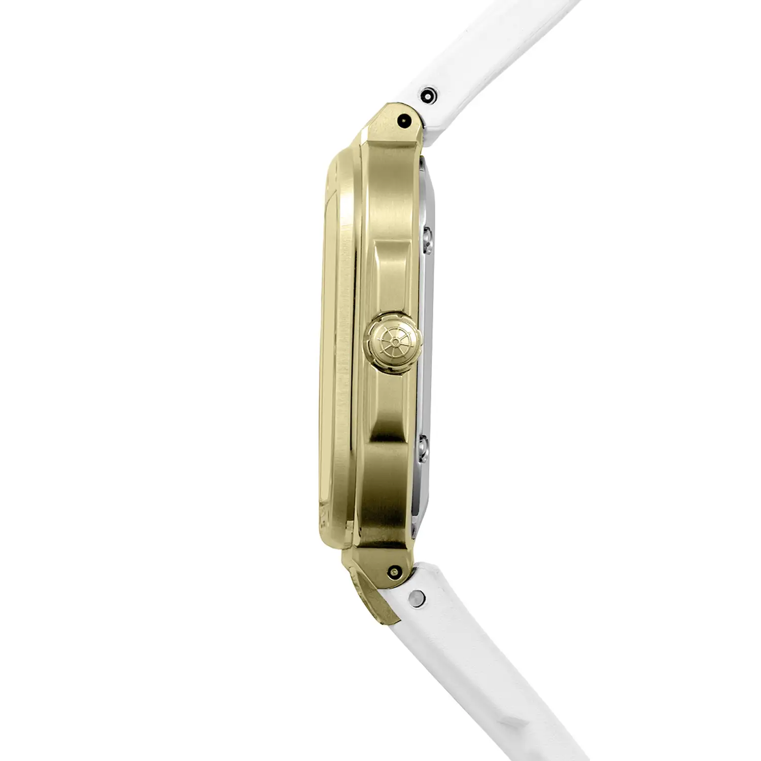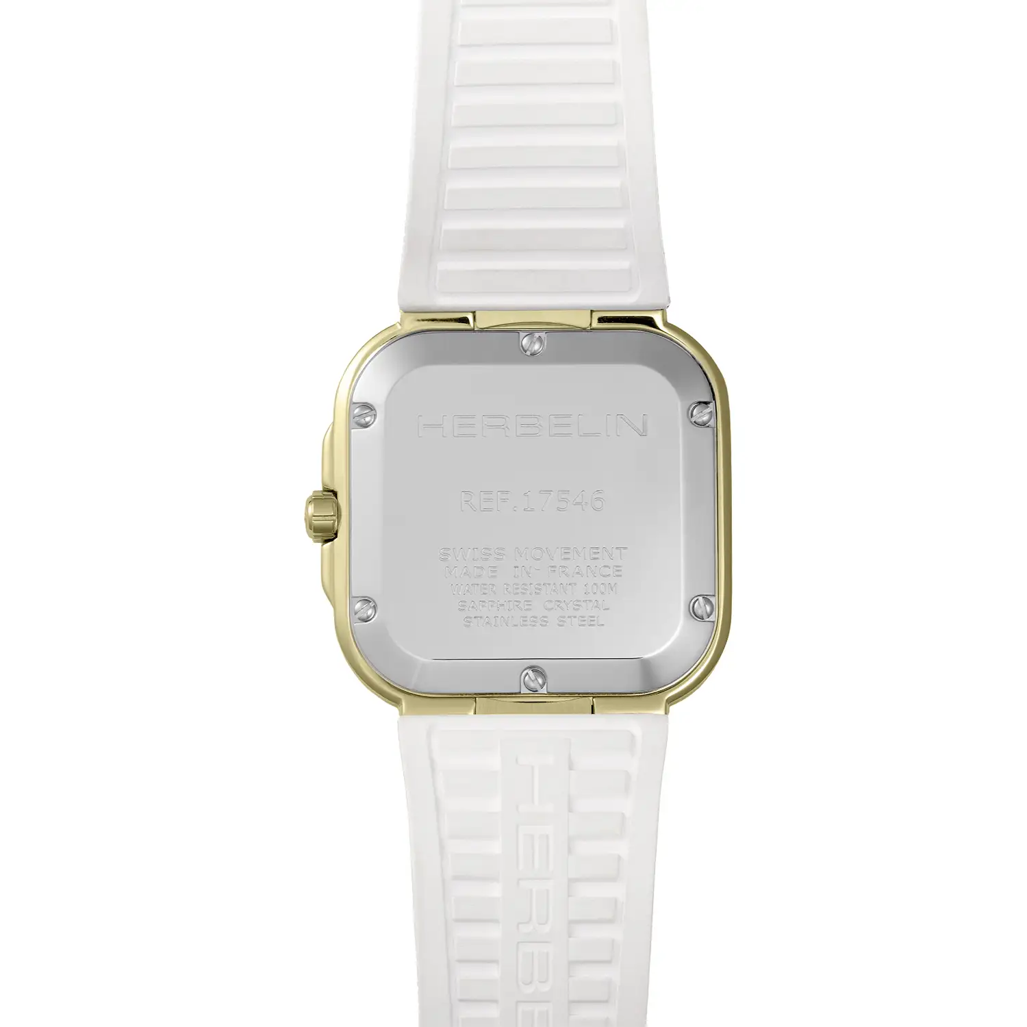 Niezawodność gwarantuje szwajcarski mechanizm kwarcowy, ukryty w smukłej obudowie o wodoszczelności do 100 metrów (10 ATM). Sportowy, a zarazem niezwykle kobiecy charakter podkreśla biały pasek z wysokogatunkowej gumy FKM. Materiał ten jest ceniony w zegarmistrzostwie za swoją aksamitną miękkość, hipoalergiczność oraz ekstremalną trwałość. Herbelin Cap Camarat Lady Square to wybór dla kobiet sukcesu, które pragną wyróżnić się za pomocą formy, cenią francuski kunszt wykonania i poszukują dodatku, który z łatwością odnajdzie się zarówno na pokładzie jachtu, jak i podczas wieczorowej gali.