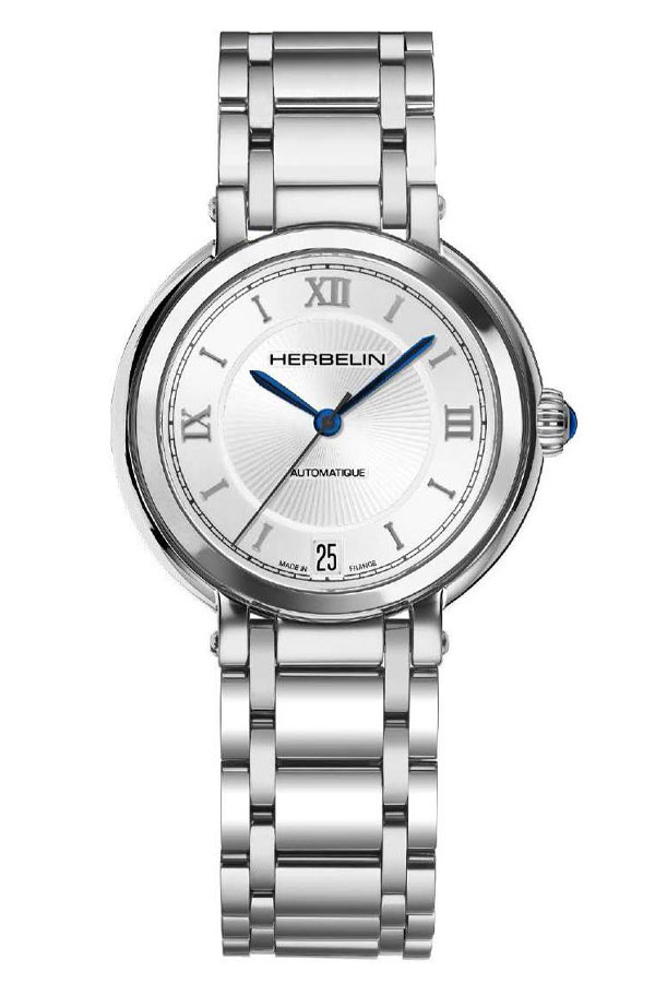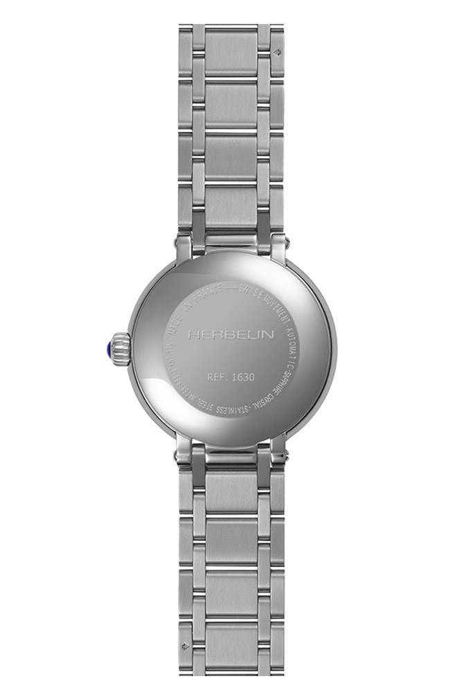 Elegancki zegarek damski francuskiej marki Herbelin Galet 1630B28 w klasycznym stylu. Koperta o grubości zaledwie 9,5 mm połączona z bardzo wygodną w noszeniu bransoletką. Tarcza w kolorze srebrnym z cyframi rzymskimi oraz indeksami liniowymi i datownikiem na godzinie szóstej przykryta została niezwykle twardym i trudnym do zarysowania szkłem szafirowym. Sercem zegarka jest mechanizm automatyczny Sellita W200-1. Wodoszczelność do 50 metrów (5 ATM), pozwala na bezpieczną kąpiel i pływanie z zegarkiem na nadgarstku. Zegarek jest propozycją dla kobiety, która docenia elegancję i ponadczasowy szyk. Zegarek Herbelin Galet pięknie prezentuje się na nadgarstku i z pewnością zwróci na siebie uwagę.