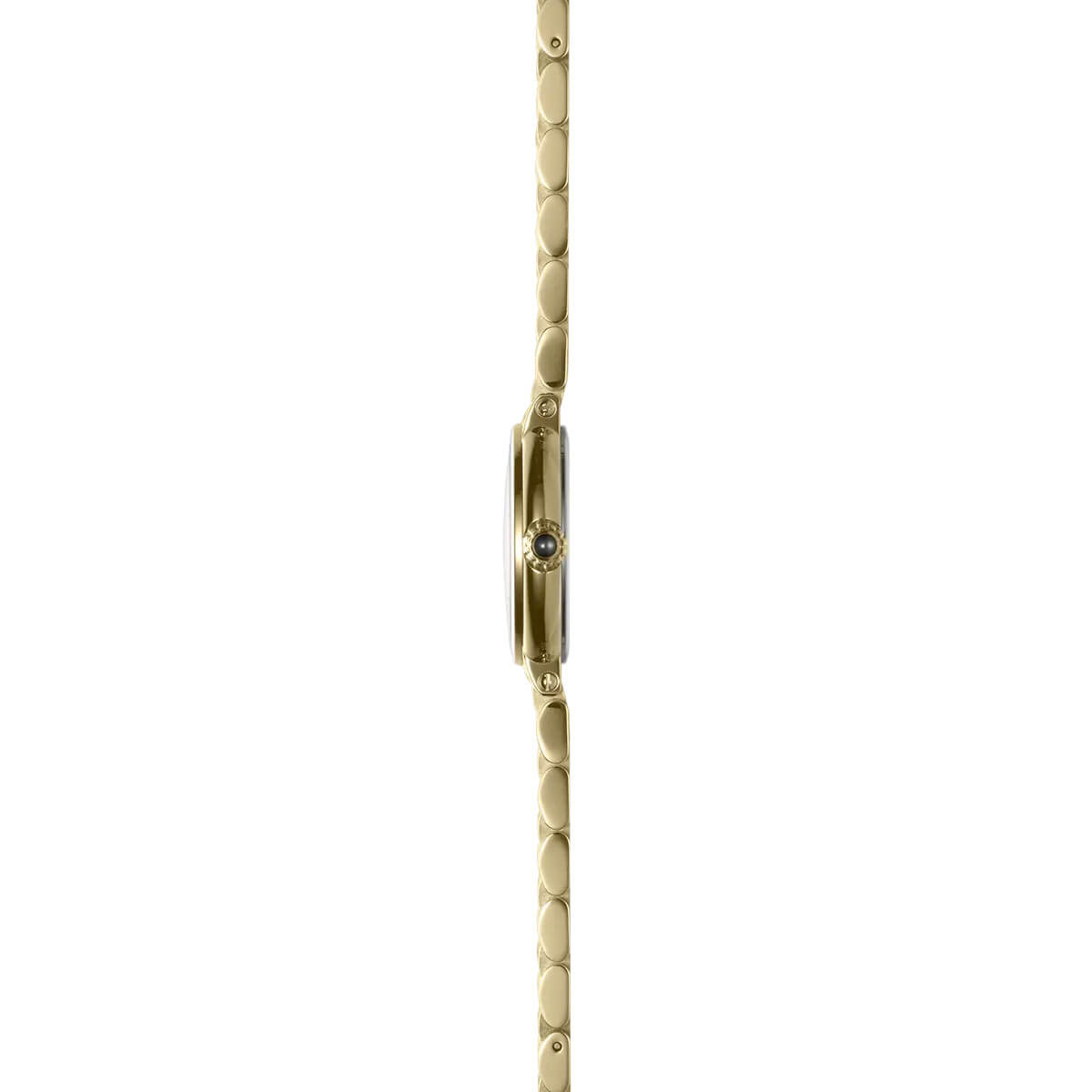 Elegancka, okrągła koperta o średnicy 28 mm, wykonana z polerowanej stali szlachetnej ze złotą powłoką PVD, nadaje zegarkowi wyjątkowego blasku. Koronka, udekorowana niebieskim onyksowym kaboszonem, stanowi nie tylko efektowny akcent, ale także symbol precyzyjnego rzemiosła i dbałości o każdy szczegół. Całość dopełnia pozłacana bransoleta z wysokiej jakości stali nierdzewnej, wyposażona w zapięcie motylkowe, które zapewnia komfort noszenia i perfekcyjne wykończenie.