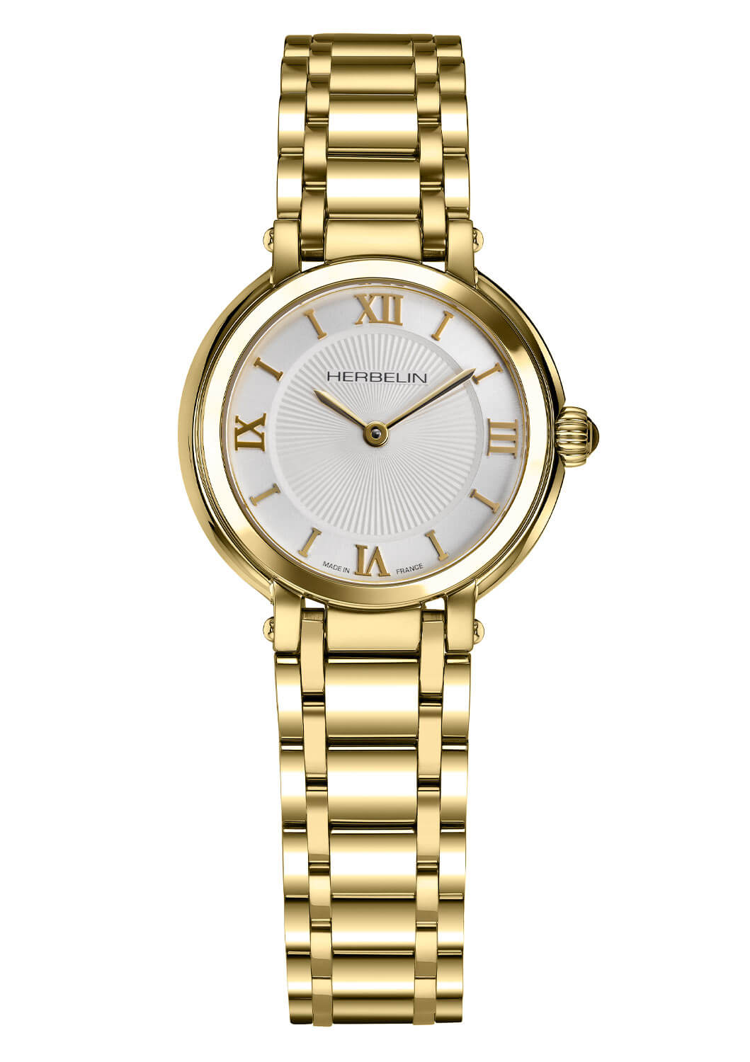 Srebrna tarcza zegarka Herbelin 17430BP28, zachwyca eleganckim giloszem w postaci promieni słońca — gilosz wprowadza do projektu elegancję i ponadczasową klasę. Wskazówki godzinowa i minutowa, wykonane ze stali, subtelnie kontrastują z resztą tarczy, dodając całości wyrafinowanego akcentu kolorystycznego. Serce tego wyjątkowego czasomierza to niezawodny szwajcarski mechanizm, który gwarantuje precyzyjne odmierzanie czasu i niezawodność, której można zaufać w każdej sytuacji.