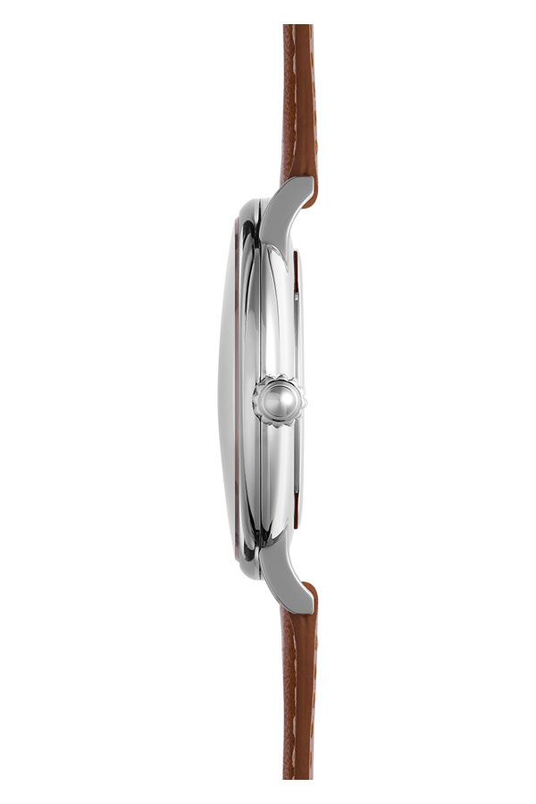 Okrągła stalowa koperta o średnicy 40 mm nadaje zegarkowi solidność i klasyczny wygląd. Detale dodają mu wyjątkowego charakteru, a jednocześnie podkreślają jego luksusowy styl. Pasek skórzany w kolorze brązowym z jasnym przeszyciem jest nie tylko estetyczny, ale także komfortowy w noszeniu, co sprawia, że czasomierz stanowi idealne dopełnienie męskiej garderoby.