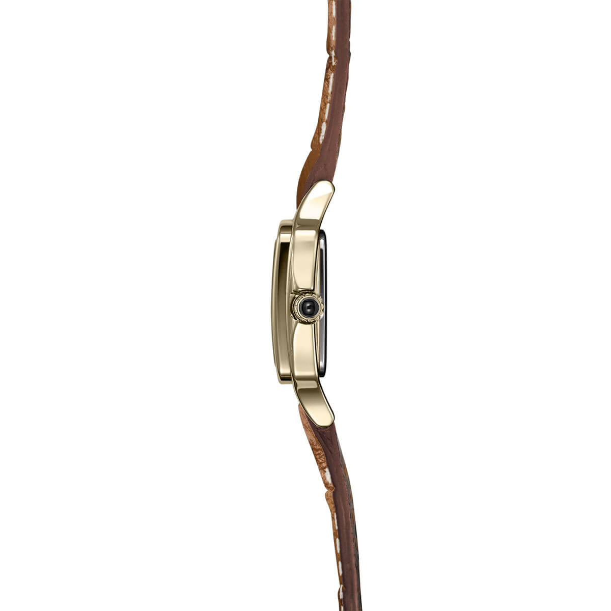 Smukła, pozłacana powłoką PVD koperta o wymiarach 18.60 × 20 mm została wykonana z odpornej stali szlachetnej 316L, której eleganckie, satynowane wykończenie podkreśla ponadczasową formę. Zestawiono ją z brązowym paskiem z naturalnej skóry – miękkim, ale wyrazistym dodatkiem. Szkło szafirowe zabezpiecza cyferblat przed zarysowaniami i sprawia, że zegarek nie traci uroku nawet przy intensywnym użytkowaniu.