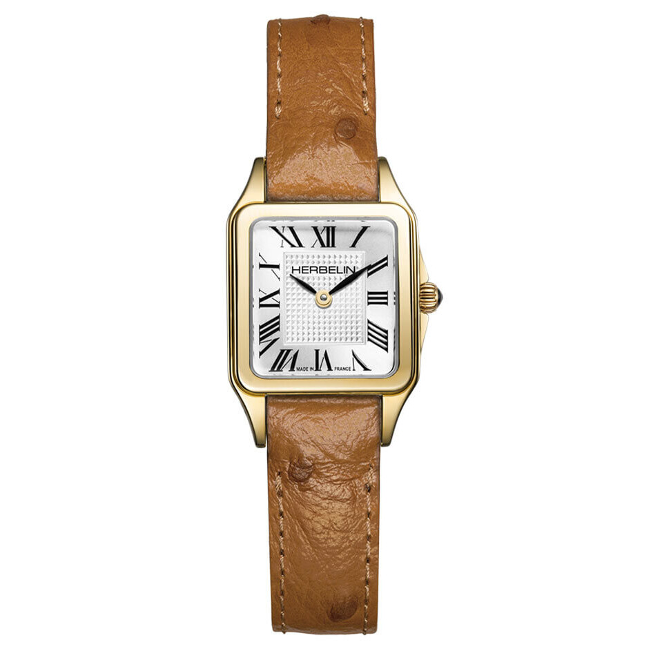 Na srebrzystej tarczy uwagę przyciąga kwadratowy wzór giloszowania w centrum, otoczony rzymskimi indeksami o klasycznym charakterze – to połączenie paryskiego szyku i zegarmistrzowskiego porządku. Kontrast między formą a detalem dodaje modelowi głębi i elegancji. Za precyzyjny chód odpowiada szwajcarski mechanizm Ronda, gwarantujący niezawodność i komfort użytkowania bez potrzeby codziennej regulacji. Model ten nie aspiruje do roli ekstrawaganckiej biżuterii – to wyważony projekt o ponadczasowej tożsamości. Pozłacany zegarek damski Herbelin Luna 17407P1N08GD na pasku skórzanym to zegarek dla kobiet, które cenią ciszę zamiast hałasu i jakość zamiast pozorów.
