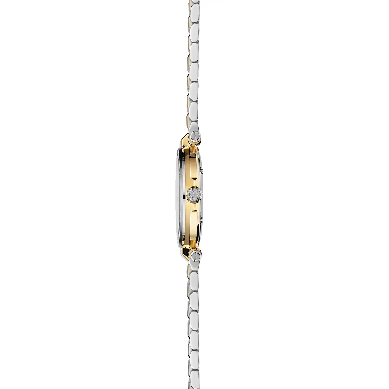 Konstrukcja czasomierza opiera się na zestawieniu wysokogatunkowej stali szlachetnej z detalami pokrytymi żółtym złotem metodą PVD. Polerowany pierścień inspirowany bulajem statku oraz charakterystyczne, centralne mocowania bransolety tworzą unikalną sylwetkę, rozpoznawalną wśród koneserów luksusowych dodatków. Cyferblat chroni najwyższej klasy szkło szafirowe, które dzięki swojej twardości pozostaje odporne na zarysowania, zapewniając nieskazitelną przejrzystość przez długie lata użytkowania. Złocone wskazówki i indeksy liniowe dopełniają całości, tworząc spójną i prestiżową kompozycję.