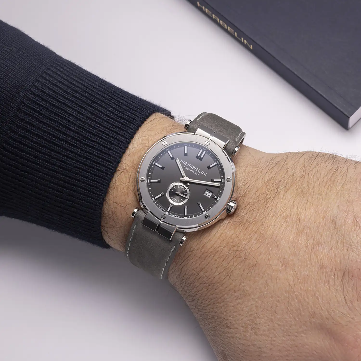Kolekcja Newport od lat stanowi wizytówkę francuskiej marki Herbelin, a model 18389A22GR to jej najbardziej nowoczesna i stonowana interpretacja. Projekt ten czerpie inspirację z osprzętu luksusowych jachtów, co widoczne jest w charakterystycznej, szczotkowanej kopercie o średnicy 40,5 mm z centralnym mocowaniem paska. Całość wykonano z najwyższej jakości stali szlachetnej 316L, która dzięki swojej odporności na korozję idealnie wpisuje się w marynistyczne dziedzictwo manufaktury z Charquemont.