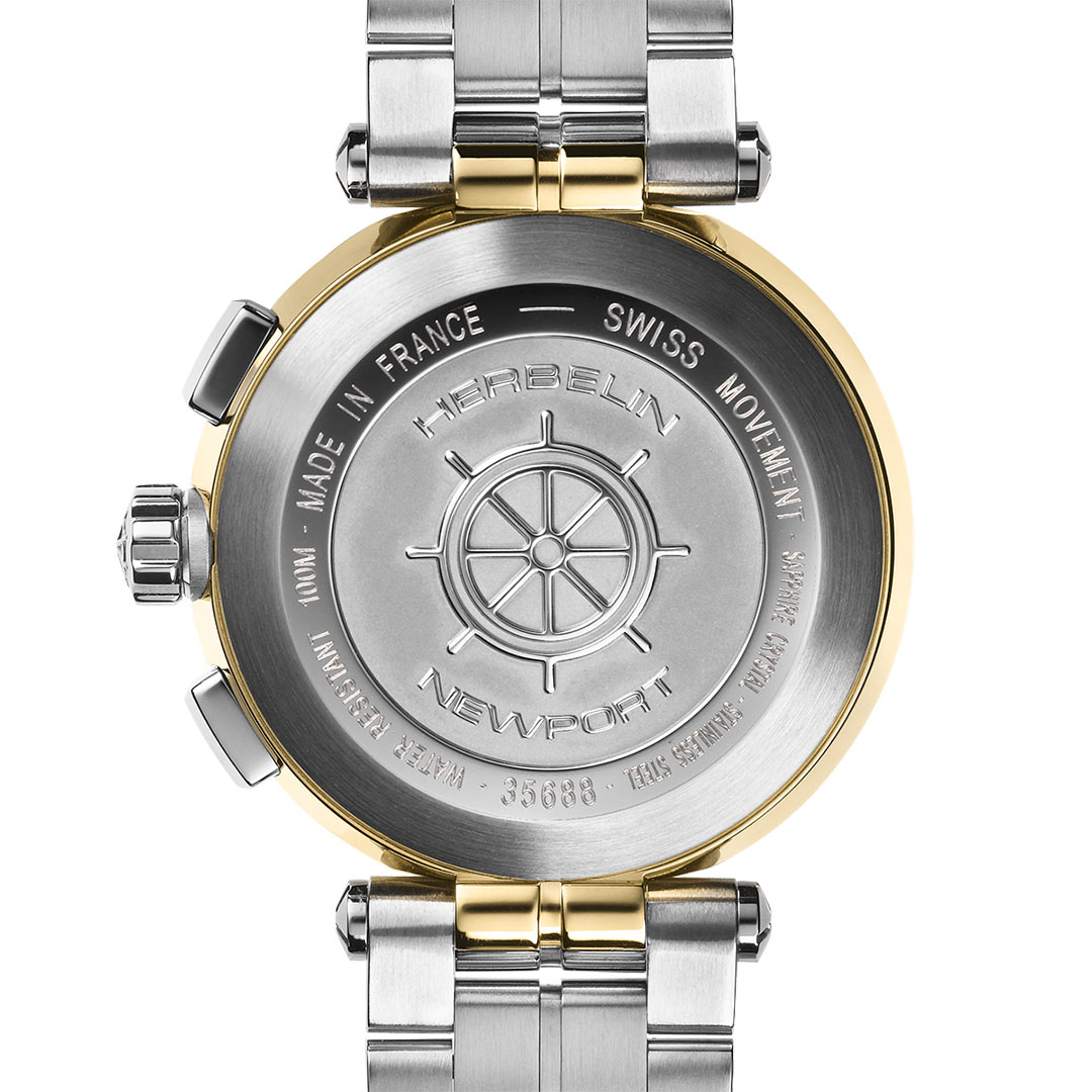 Herbelin Newport Chrono 35688BT19 to elegancki zegarek damski z chronografem, który zachwyca nie tylko Francuzki. Jako reprezentant wysokiej jakości wykonania i wyrafinowanego designu, ten srebrno-złoty model przyspiesza bicie serca u wszystkich Pań.