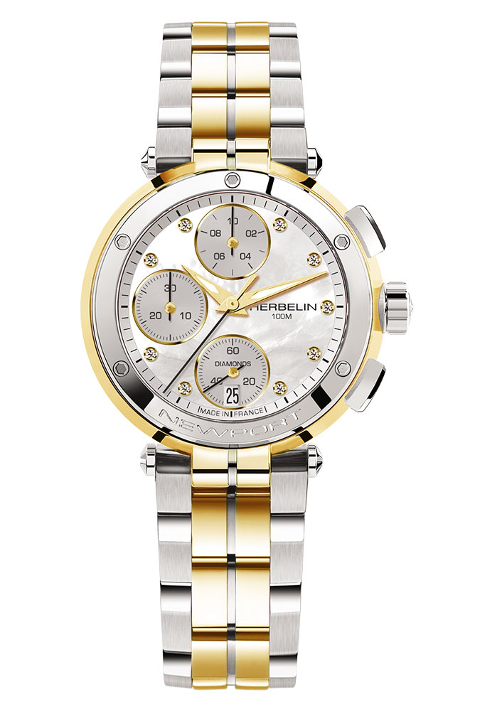 Herbelin Newport Chrono 35688BT89 to elegancki zegarek damski z chronografem, który zachwyca nie tylko Francuzki. Jako reprezentant wysokiej jakości wykonania i wyrafinowanego designu, ten srebrno-złoty model przyspiesza bicie serca u wszystkich Pań.