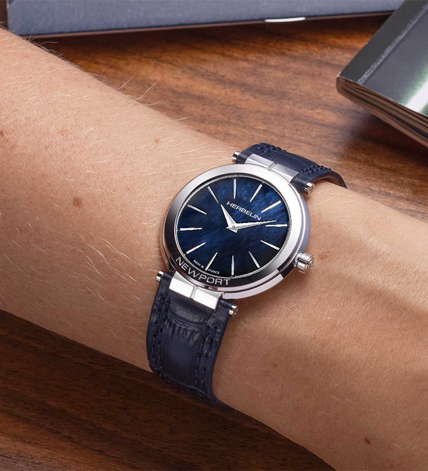 Herbelin Newport Slim 16922AP60BL to propozycja eleganckiego zegarka idącego z duchem żeglarstwa. Czasomierz świetnie zaprezentuje się na każdym kobiecym nadgarstku. Dzięki cienkiej kopercie i paskowi ze skóry będzie nosił się wygodnie i przyjemnie.
